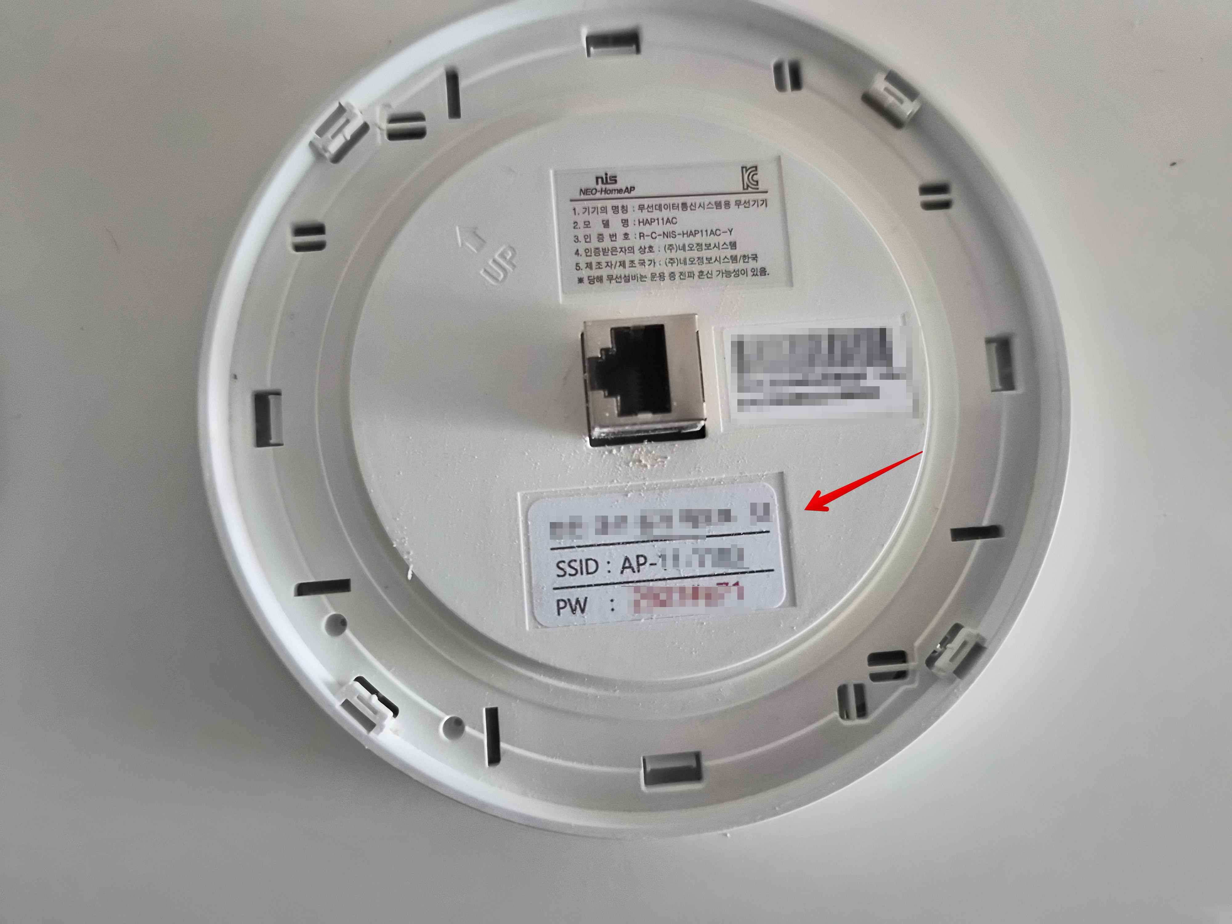 기존에 있던 제품을 떼서 살펴보게 되면 아래쪽에 스티커가 붙어있는데 여기에 SSID와 PW가 적혀있다. 그래서 스티커를 떼서 새로운 제품쪽에 일단 붙여주었다. 따로 비밀번호 변경하고 관리하기도 귀찮아서 그대로 쓰고 싶었다.