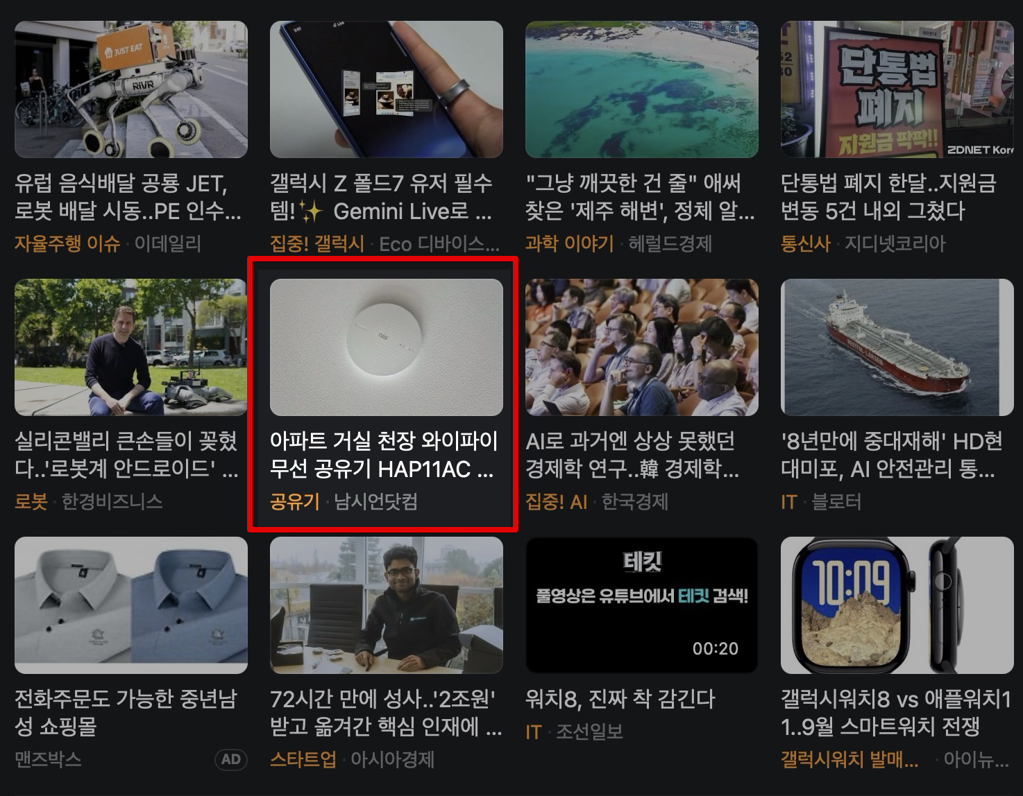컴퓨터가 있는 방과 침대에 누워자는 안방과 거리가 꽤 있어서 안방에선 공유기 신호가 조금 덜 잡히는게 있긴 했었지만 크게 거슬릴만한 경험은 없었어서 그냥저냥 쓰고 있던 중이었다. 그러다가 예전에 통신사에 근무하는 친구가 잠깐 놀러왔던적이 있는데 이런저런 이야기를 하다가 본인은 천장 와이파이를 잘 쓰고 있다고해서 한 번 생각해보게 된 계기가 있었고, 최근에는 집에 셋톱박스를 들이게 되었는데 셋톱박스를 설치해주러오신 기사님도 천장 와이파이에 연결하는걸 추천하길래 또 한 번 생각하게 되어서, 이번에 전원 연결해서 천장 와이파이를 쓰보고자 마음먹게 되었다.