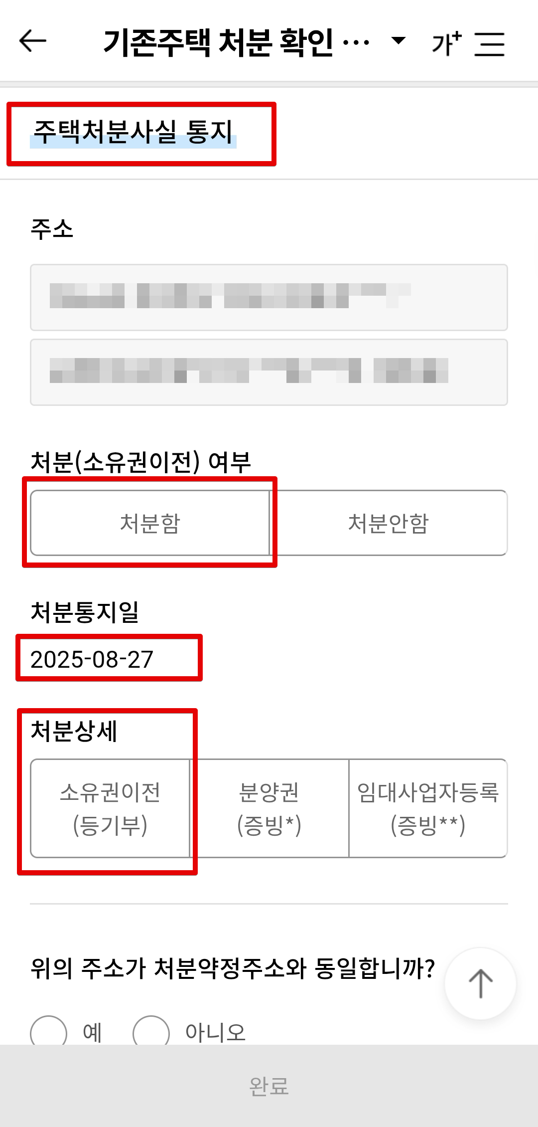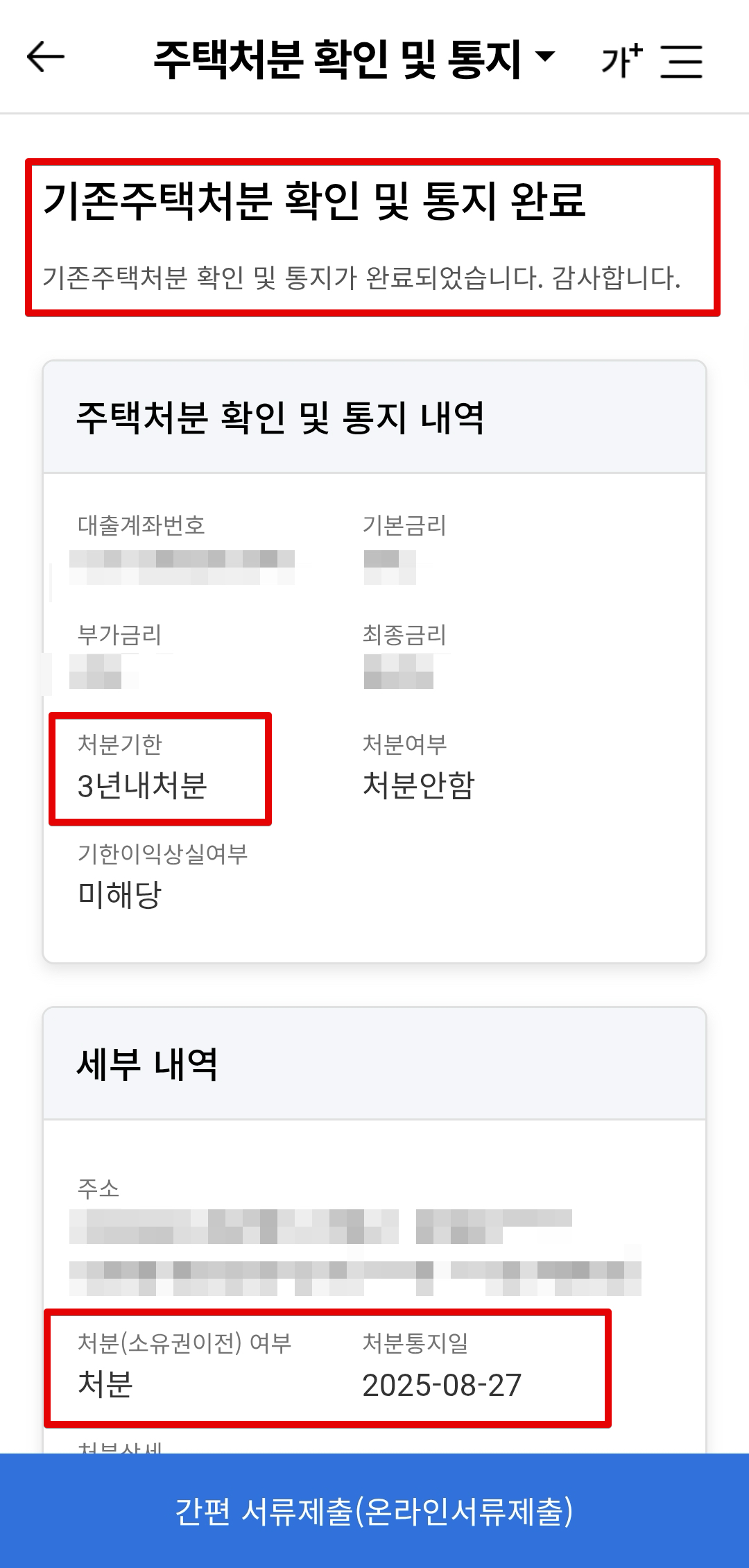 기존주택을 이미 오래전에 처분했으므로 일단 안내받은대로 기존주택처분 확인 및 통지를 진행해보자.
