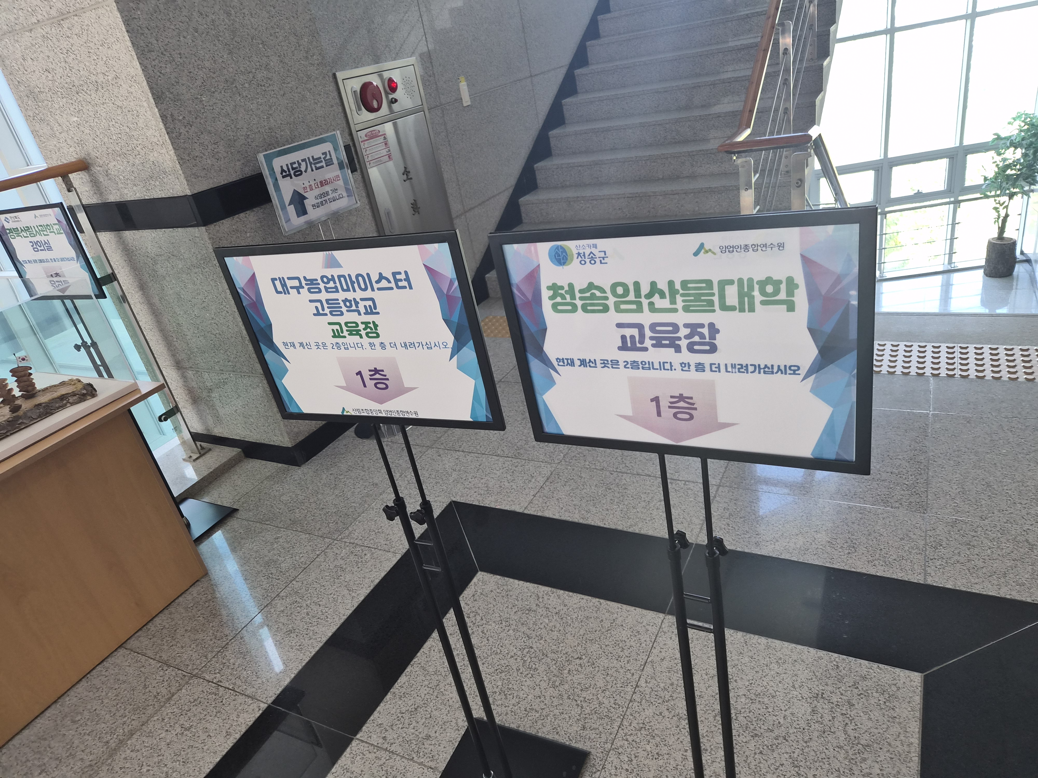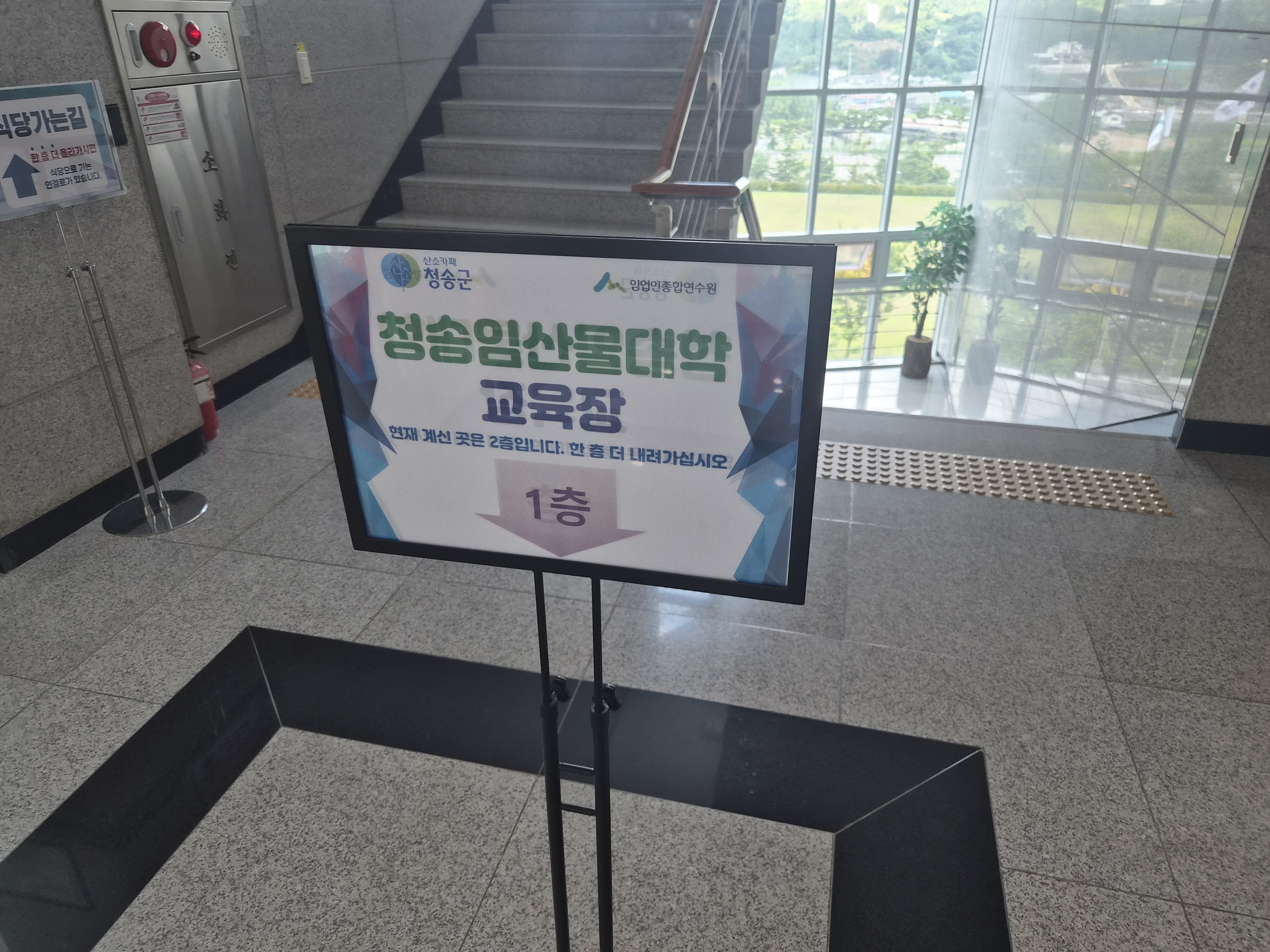 청송임산물대학 교육장은 1층에 있어서 1층으로 갔습니다.