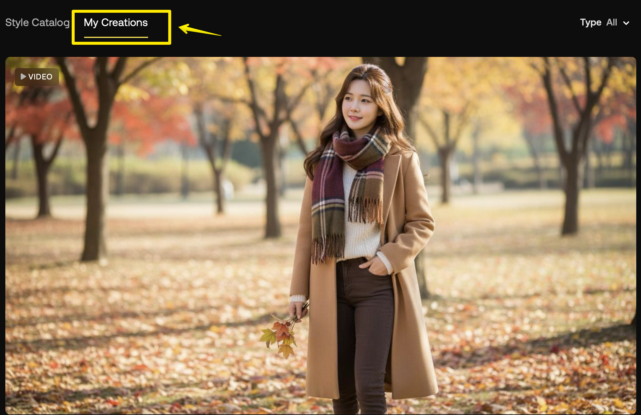 생성이 완료되면 아래쪽으로 스크롤을 내려서 <My Creations> 탭에서 결과물을 확인하세요.
