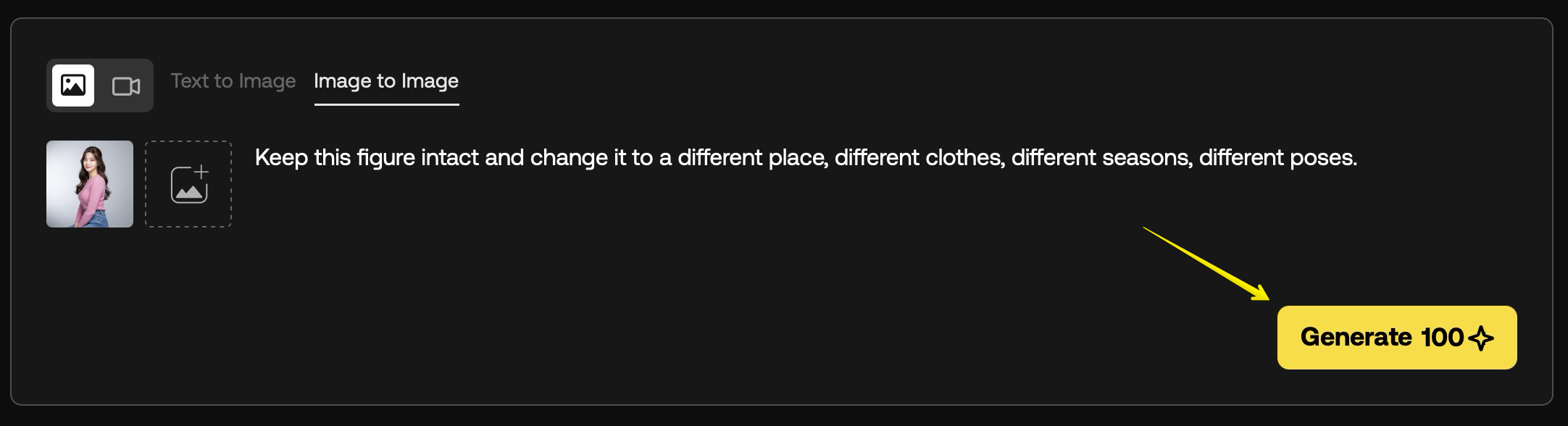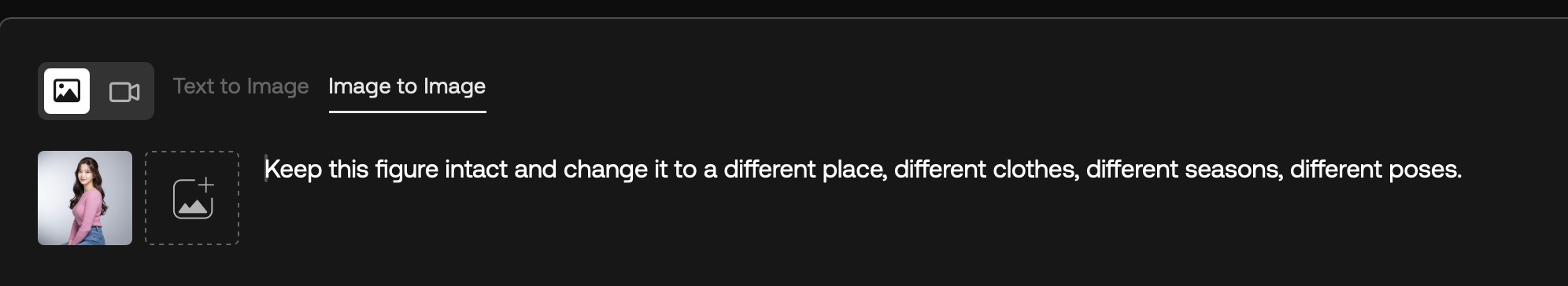 원하는 이미지를 드래그&드롭으로 업로드하고 프롬프트를 입력합니다. 텍스트 프롬프트의 경우 한글도 잘 이해하는 편이지만 조금 더 정확하고 명확한 결과물을 유도하기 위해 영어를 사용하였습니다. 텍스트 프롬프트에서는 편집, 배경 변경, 카메라 방향 추가, 색상 교체, 새로운 조명 연출 등 원하는 작업을 지시하면 됩니다.