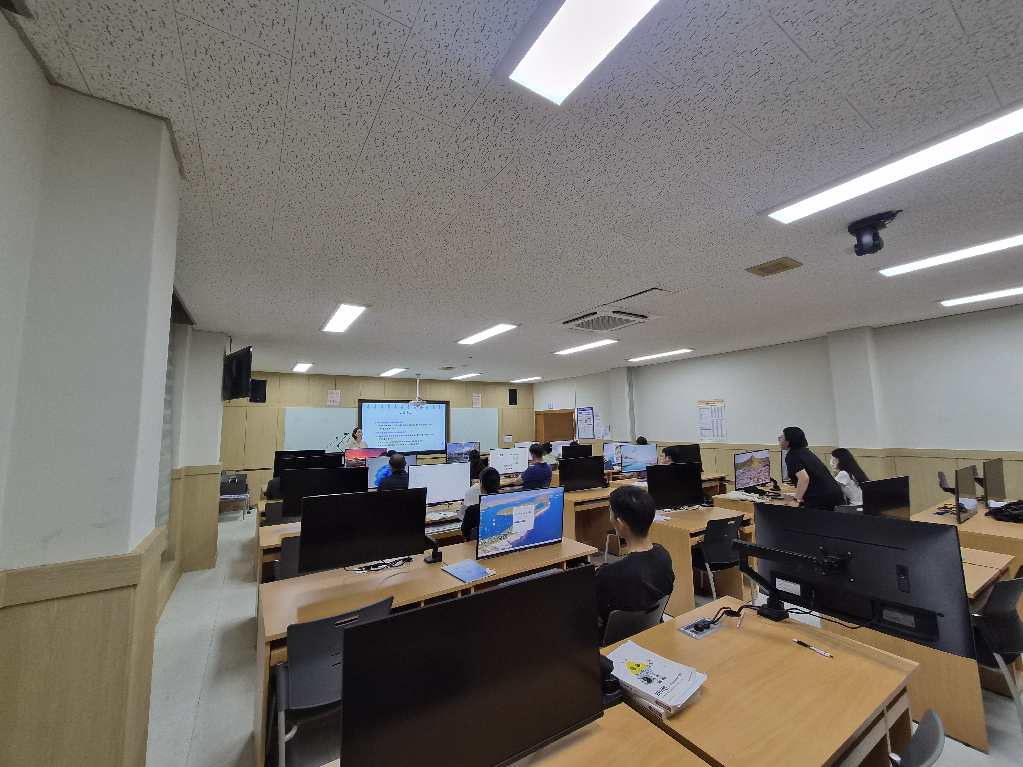 경상북도와 예천군, 국립경국대학교에서 함께하는 교육으로서 국립경국대학교 예천캠퍼스 제1강의동 1층에 있는 강의실에서 강의 진행이 되었습니다. 교육은 생성형 AI를 활용한 홍보 콘텐츠 제작 AI빌드업 과정의 타이틀로 생성형 AI를 활용하는 다양한 방법들과 콘텐츠 제작 과정들을 총 20시간동안 학습해보는 과정입니다.