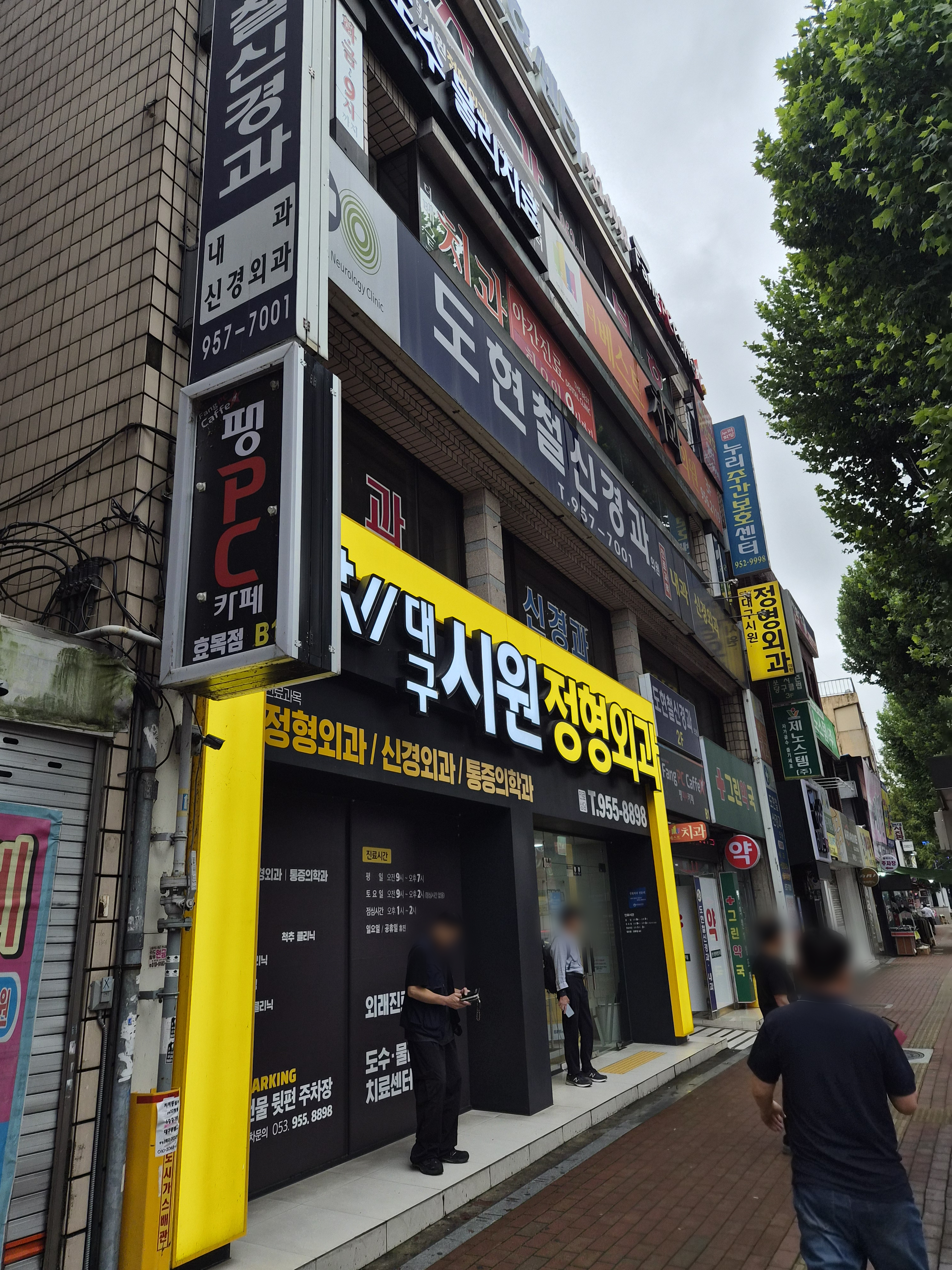 오전 일찍 집 근처 정형외과 방문했다. 도착시간은 9시 반쯤이었던 듯. 집 근처에 찾아보니까 가까운 곳, 걸어서 갈 수 있는 곳에 정형외과가 2곳이나 있었다! 길건너인 대구시원정형외과로 가보았다. 영업시간 볼려고 인터넷으로 찾았을 때에는 이름이 '대구시원정형외과'로 되어 있어서 '대구시 원 정형외과'인줄 알았는데 알고보니까 '대구 시원 정형외과'였음.ㅋㅋㅋ