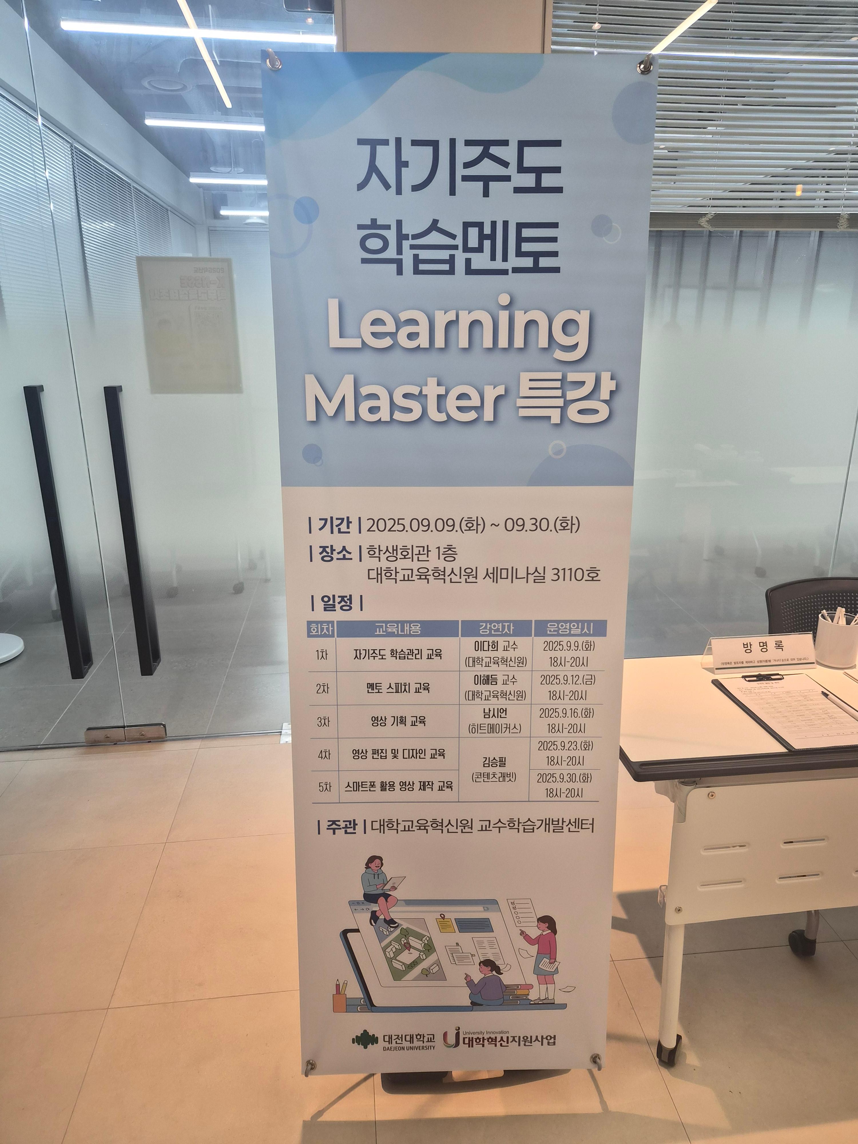 대전대학교에서 진행되는 자기주도 학습멘토 러닝마스터 특강 영상 기획 교육이 있어서 다녀왔습니다.