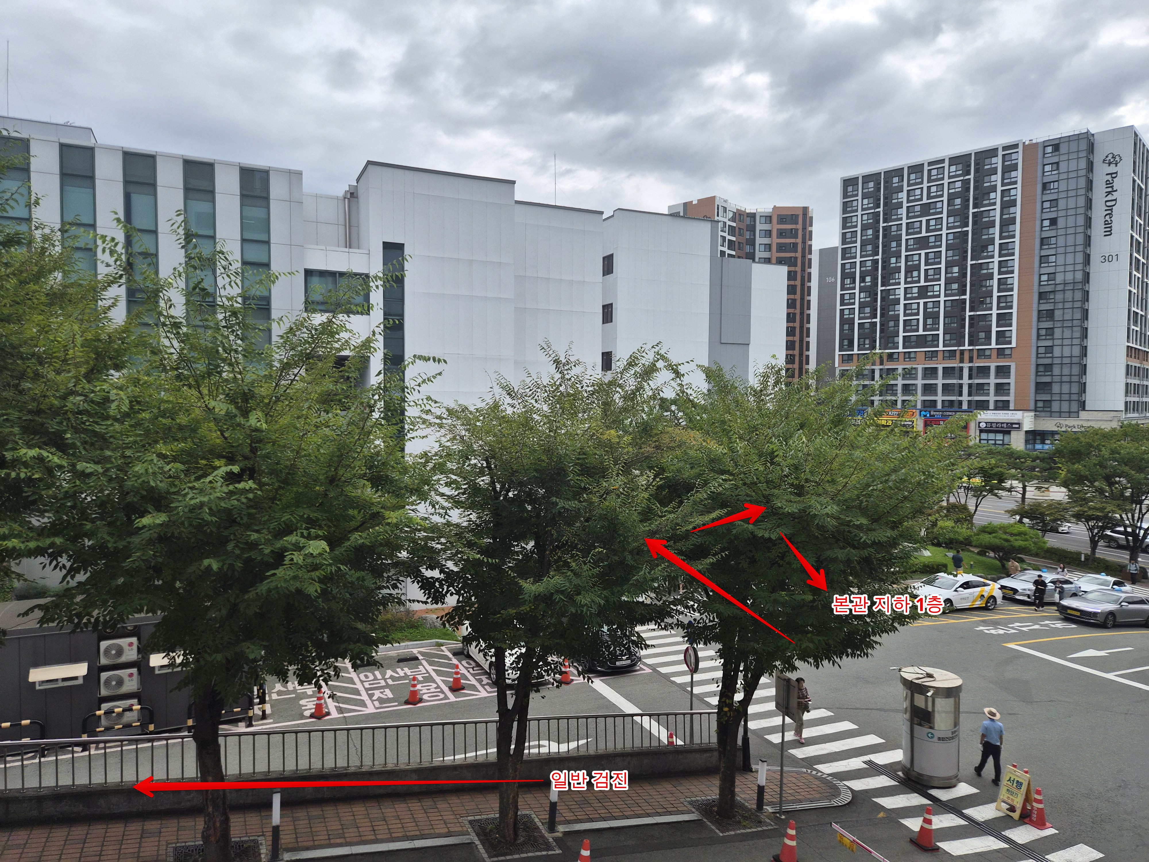 주차장에서 바라본 대구 파티마병원 기준으로 방향은 이렇게 돼 있다. 주차장 빠져나간 후 왼쪽으로 가게 되면 건강검진센터라고 적힌 건물이 보이는데 여기는 공단 검진은 아니고 일반 검진센터다.