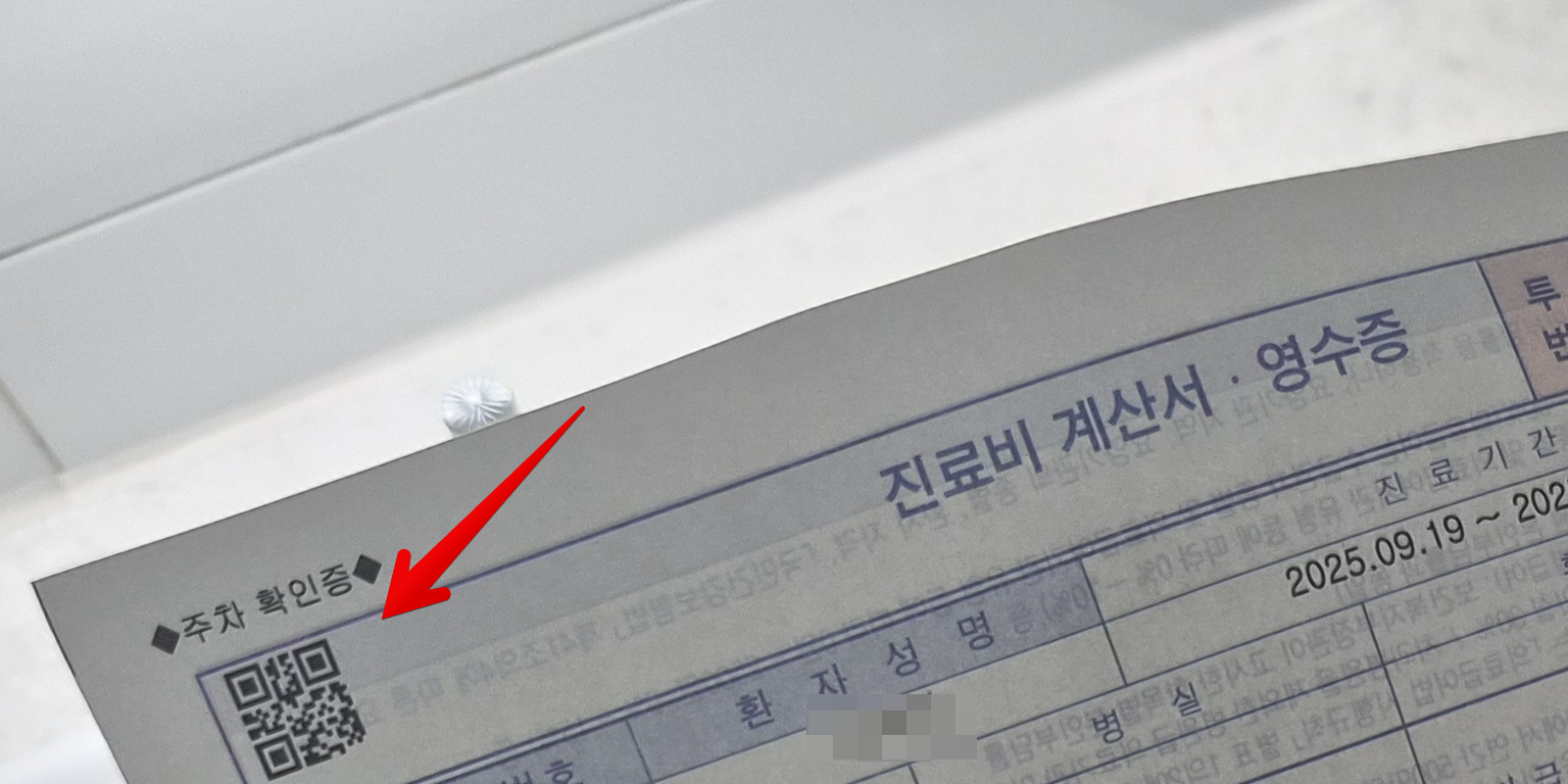 다 끝나면 진료비 계산서 영수증을 주는데 여기 왼쪽 위에 보면 QR코드가 있는데 이걸로 무인정산기에서 바코드 찍듯이 찍어서 스캔해주면 정산된다.