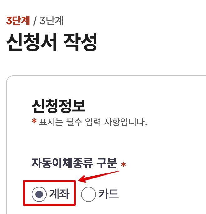 새로 신청할 땐 자동이체 종류 구분을 <계좌>로 잡으면 된다.