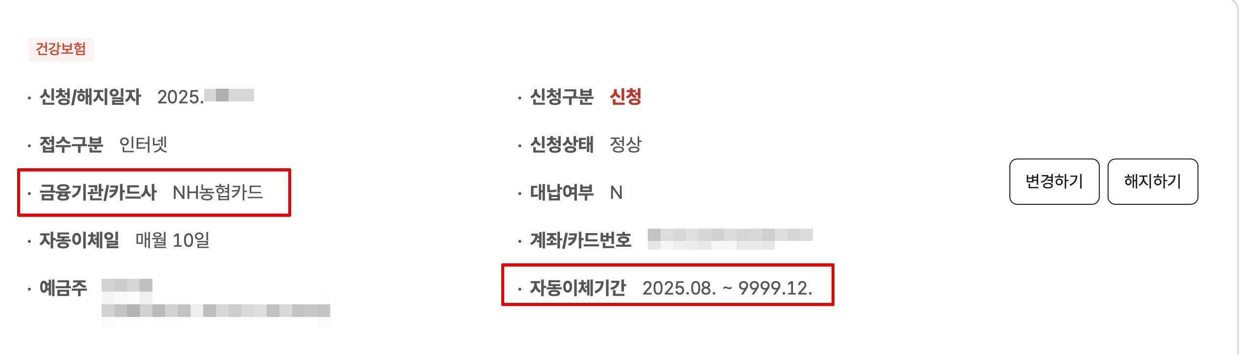 최근에 건강보험료 납부를 계좌이체에서 다시 신용카드 납부로 변경하였었다. ↓
