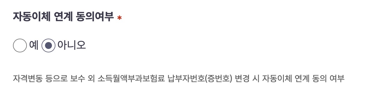 자동이체 연계 동의 여부는 <예>로 잡아주었다.