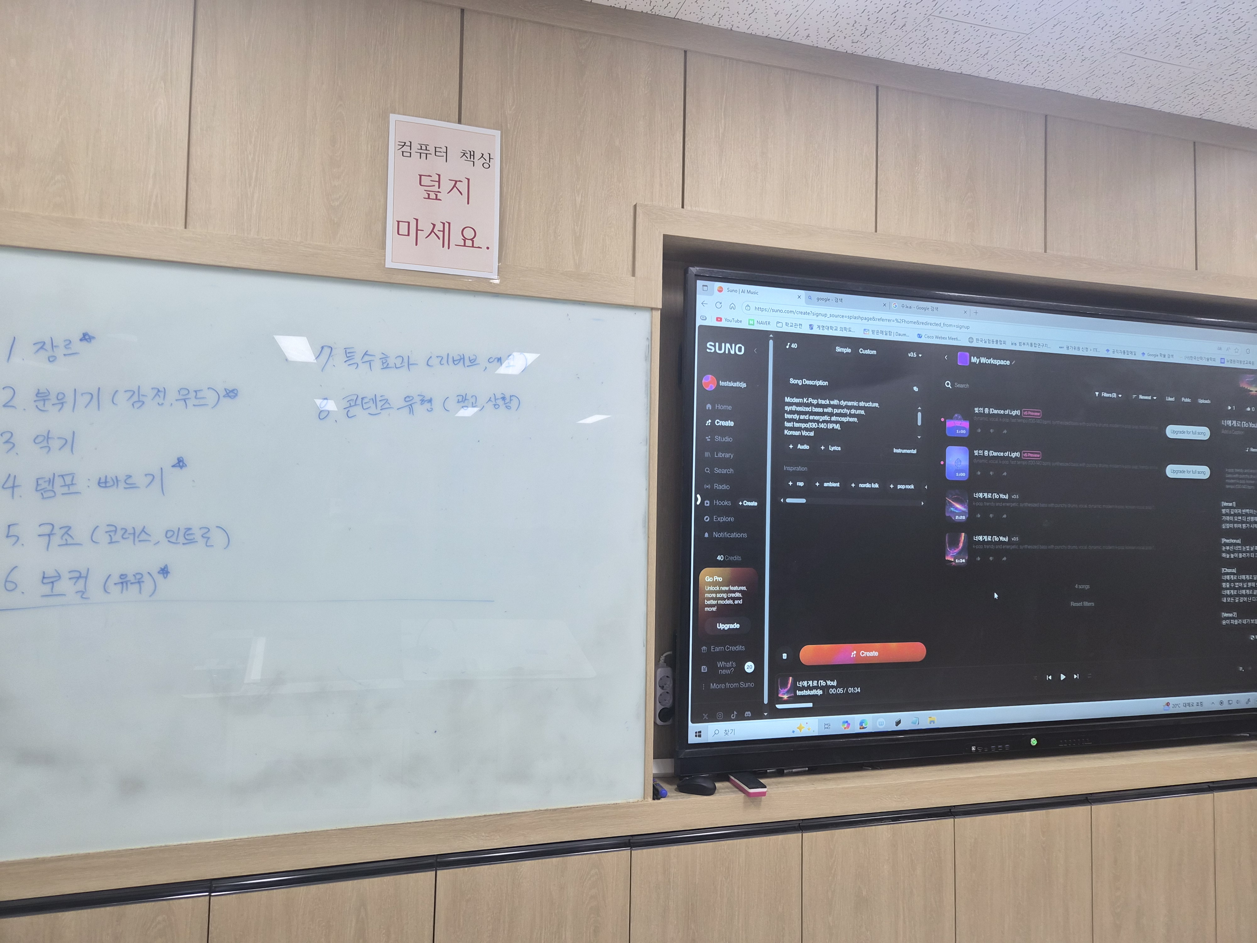 이후 수업시간에는 생성형 AI를 활용하는 영상 생성, 영상 편집 실습을 진행하였고 마지막 시간에는 생성형 AI를 이용해 자신만의 음악을 만들어보는 시간도 가져보았습니다.