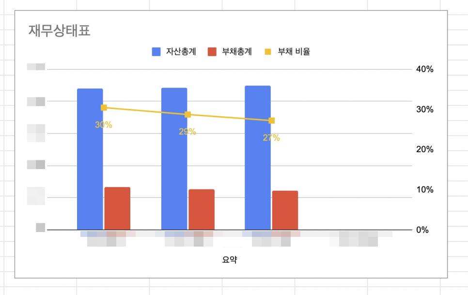 기본적으로는 부채는 줄이고 자산은 늘리는 방향으로 진행하면 된다. 부채 비율을 적정선으로 유지하는 것도 굉장히 중요하다고 생각한다. 내가 생각하는 적정한 부채비율은 전체 자산에서 30%를 초과하지 않는 수준이다. 이거는 가계부만 써서는 알아내기가 어렵고 가계 재무상태표를 작성해야 한 눈에 알아볼 수 있다.