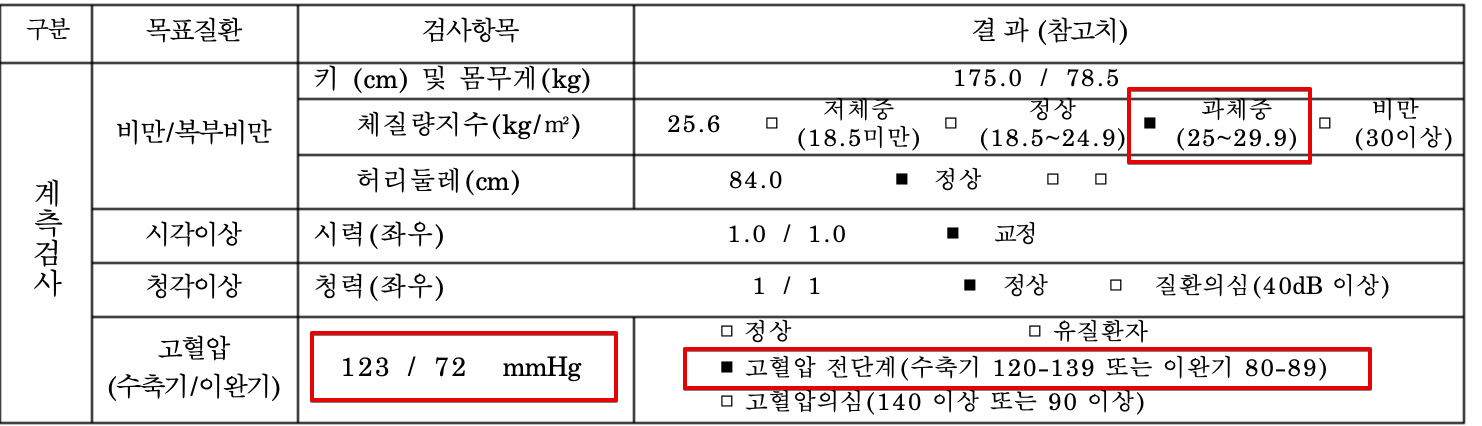 체력도 떨어지고... 그리고 2023년 기준으로 최근 2번동안 혈압쪽이 계속 꽤 높게나와가지고 좀 염려스러웠다. 고혈압 전단계가 찍혀있었다.