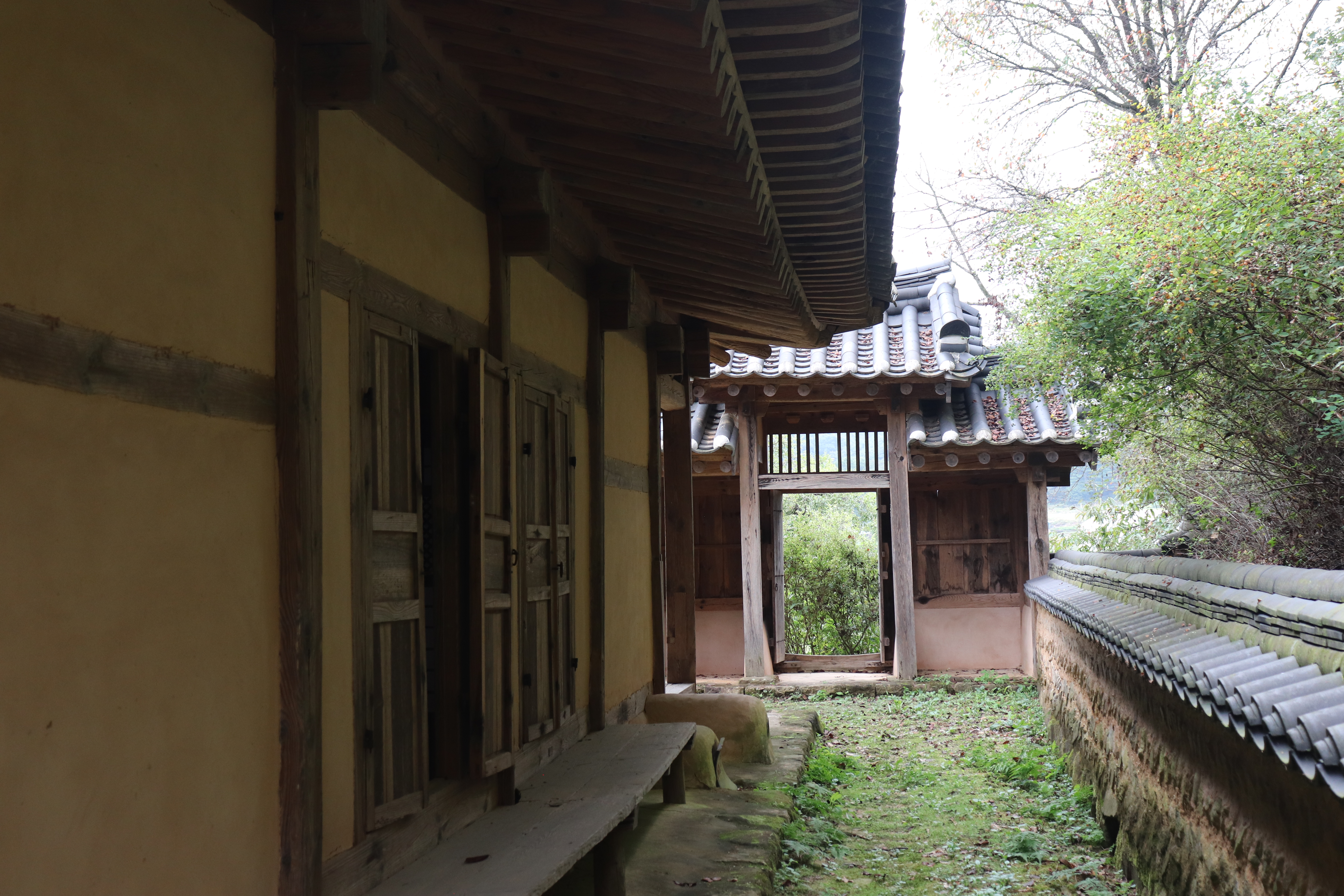 특히 마루에 앉아 밖을 바라보는 순간이 참 좋았어요. 정자 사방이 트여 있어서 어느 곳에 앉든 다른 풍경을 감상할 수 있거든요. 비 오는 날이라 더욱 고요했고, 빗소리와 나뭇잎 스치는 소리가 참 힐링되는 순간이더라고요. 정자 내부에는 현판도 걸려 있는데, 세월의 흔적이 고스란히 느껴지는 필체와 먹빛이 인상적이었어요. 옛 선비들이 이곳에서 시를 짓고, 학문을 논하고, 자연과 교감하며 살았을 모습을 상상해보았습니다.