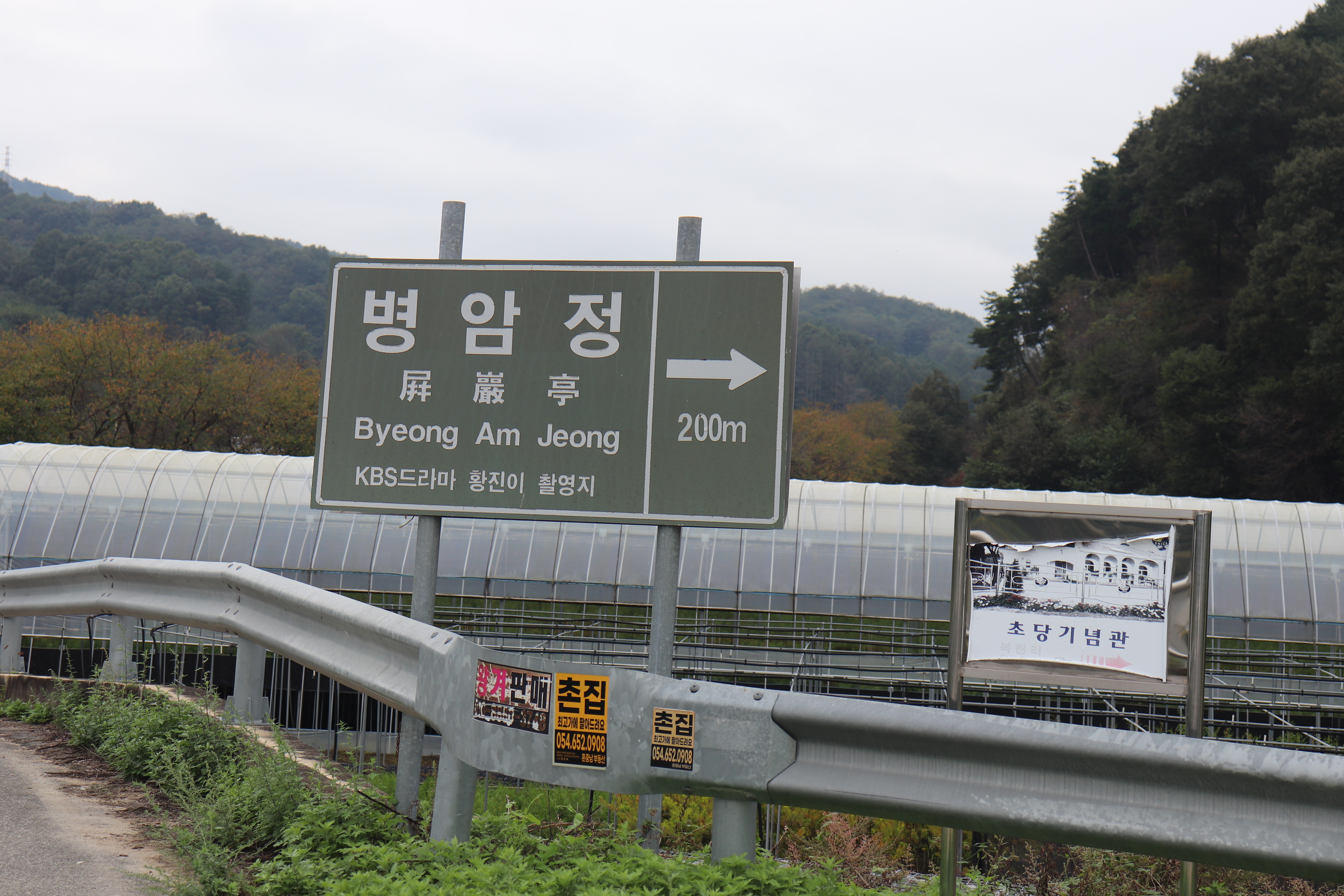 병암정으로 가는 길은 금곡천을 따라 이어져 있습니다. 좁은 시골길을 따라 천천히 가야하는 곳이죠. 비에 젖은 나뭇잎들이 더욱 선명한 색을 내뿜고 있었는데 구경해볼만했습니다. 아직 완전하게 단풍이 들진 않았었지만 초록과 노랑, 그리고 붉게 물든 단풍들을 조금이나마 감상할 수 있었어요.
