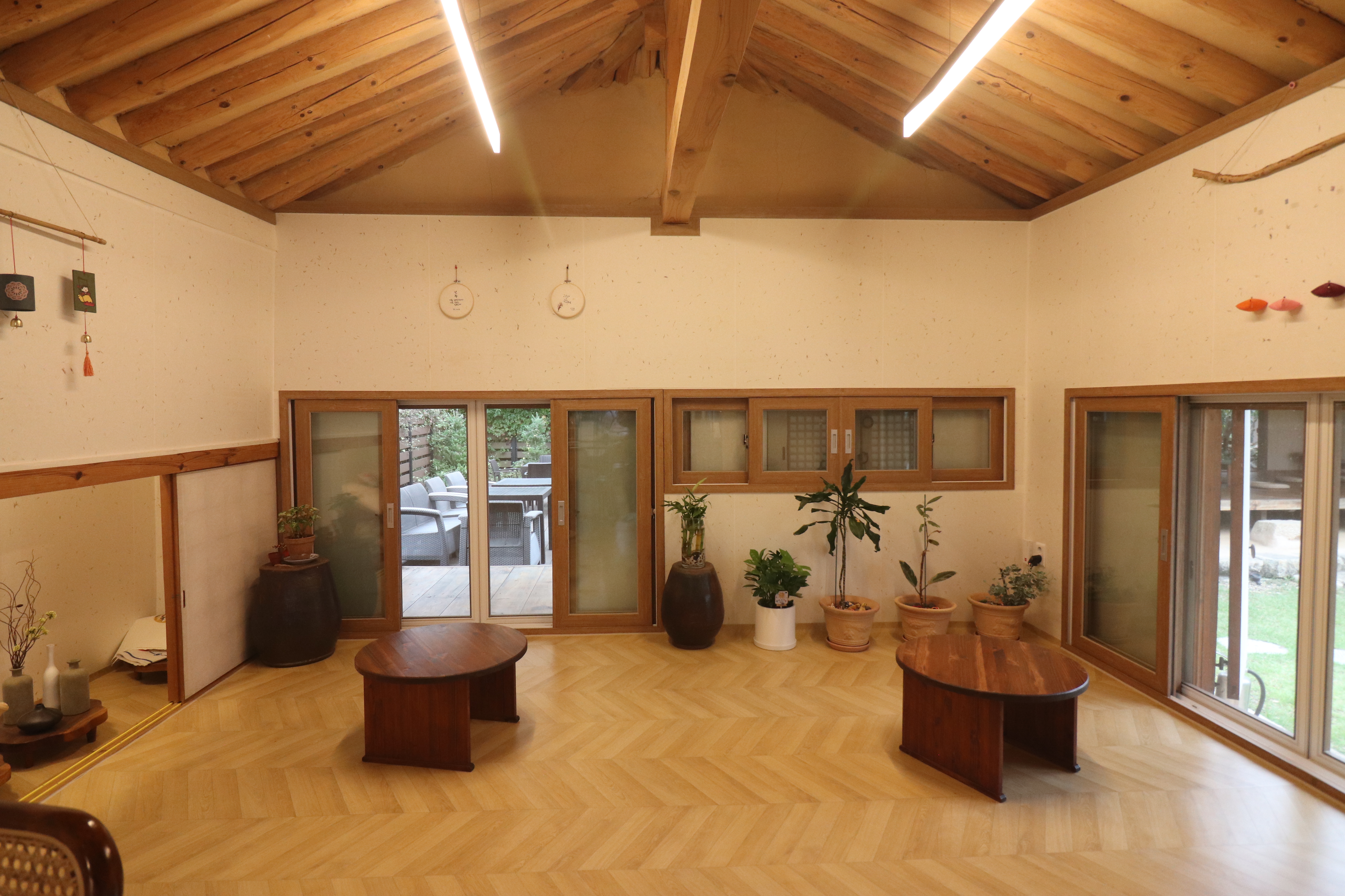 카페 내부로 들어가면 전통 가옥의 구조를 최대한 살린 채 현대적인 감각이 더해진 공간이 나타납니다. 날씨 좋은 날에도 여러번 방문했던 곳인데 비오는 날에 방문해보니 비오는날 특유의 매력이 느껴지더라고요.
