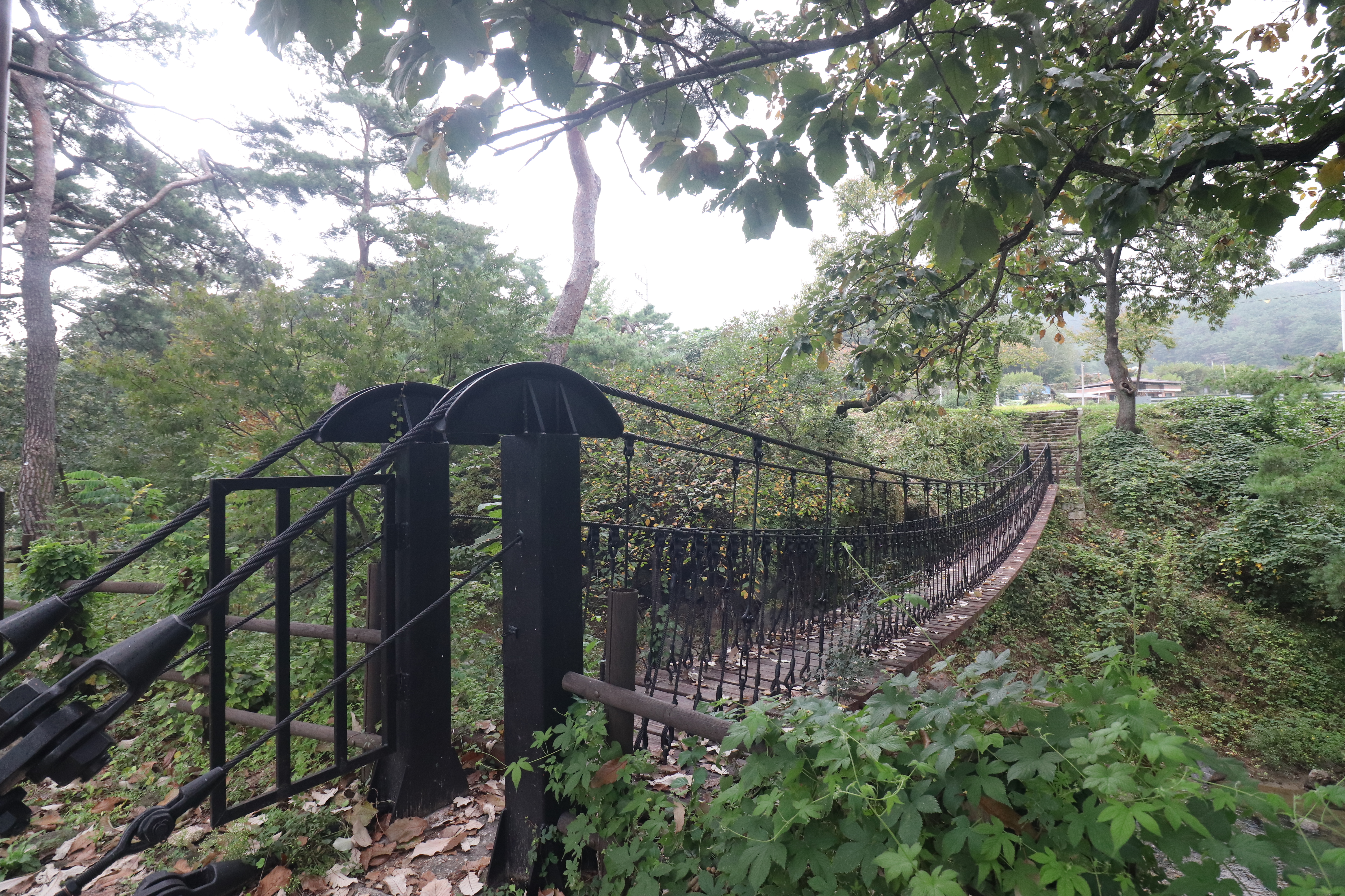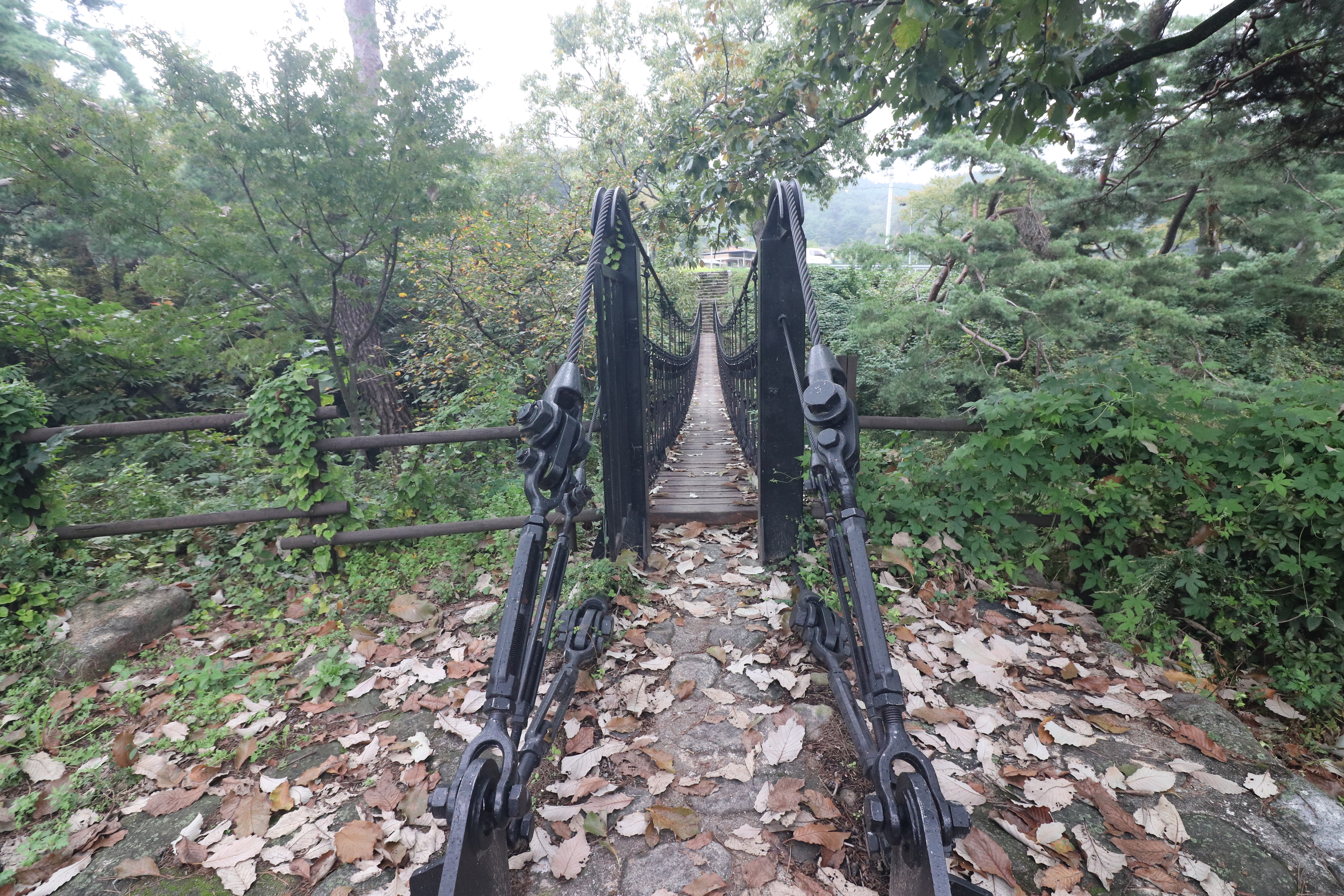 초간정에서 내려와서 주변 소나무 숲을 걸어봅니다. 초간정 입구 반대편에 있는 흔들다리쪽이 또 나름 운치가 있습니다. 어느덧 계절의 변화에 따라 낙엽이 많이 떨어져있는 모습이었어요.