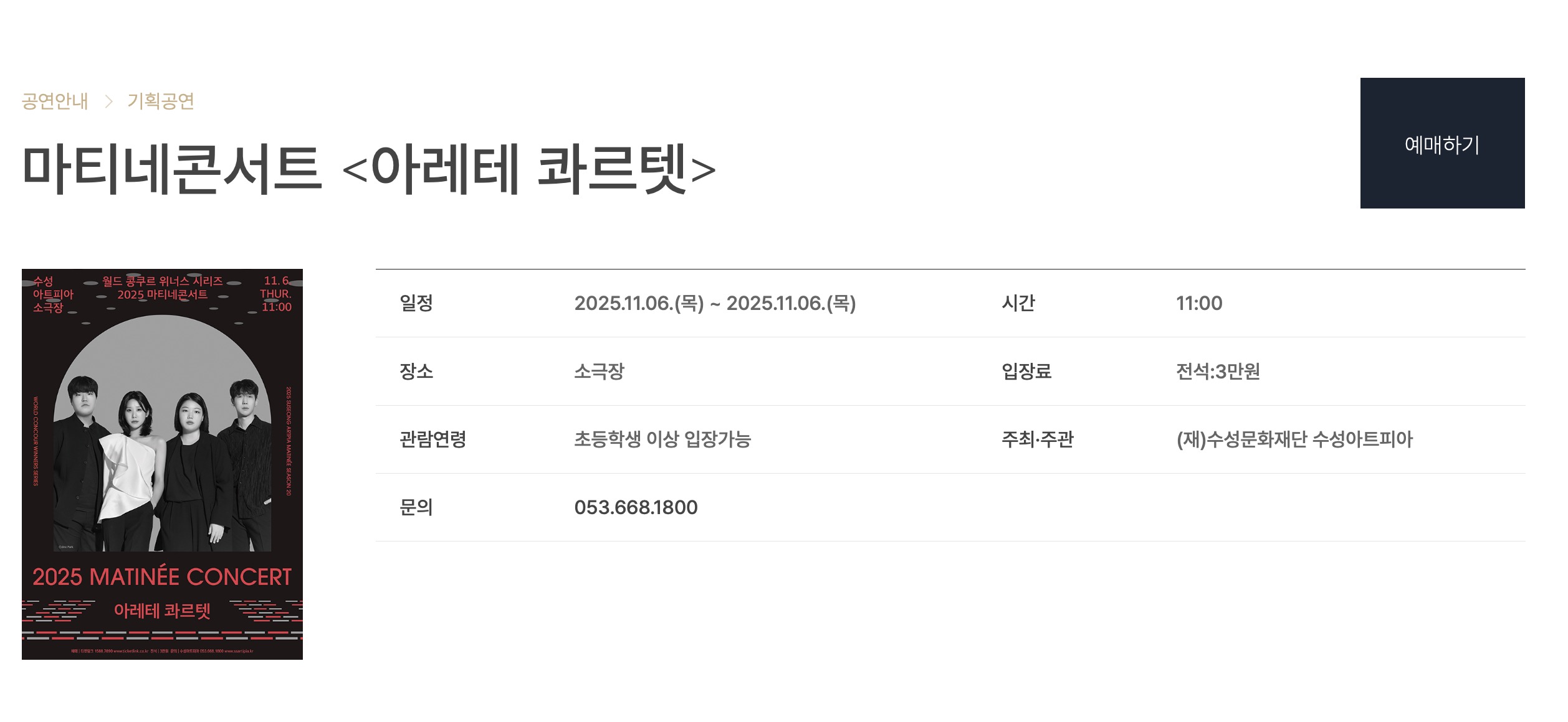 자세한 예매 정보는 수성아트피아 홈페이지에서 확인해보세요!