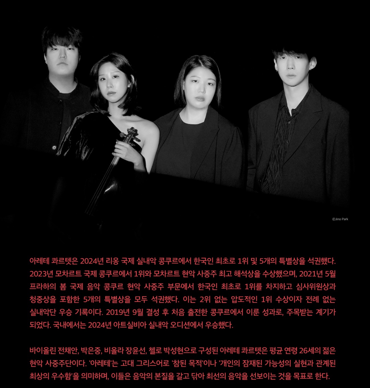 - 공연명: 월드 콩쿠르 위너스 시리즈 2025 마티네 콘서트 <아레테 콰르텟>
