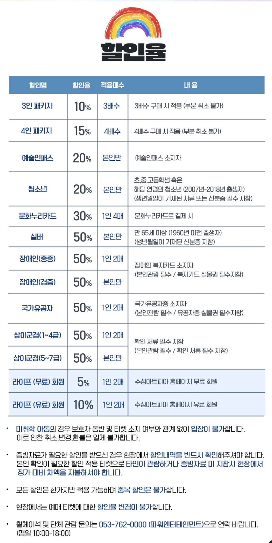 - 청소년 할인 (2007년~2018년생): 20% 할인 등