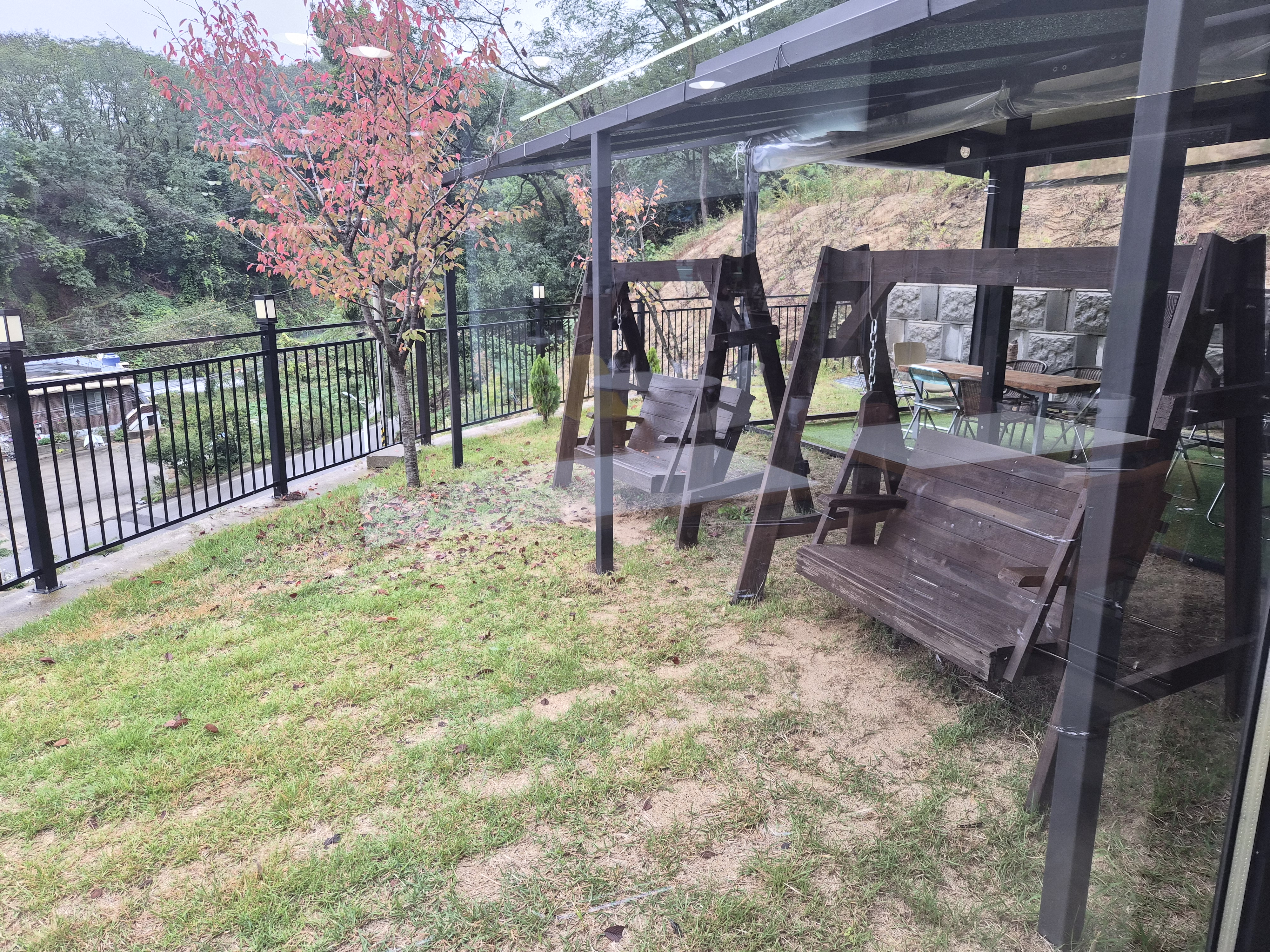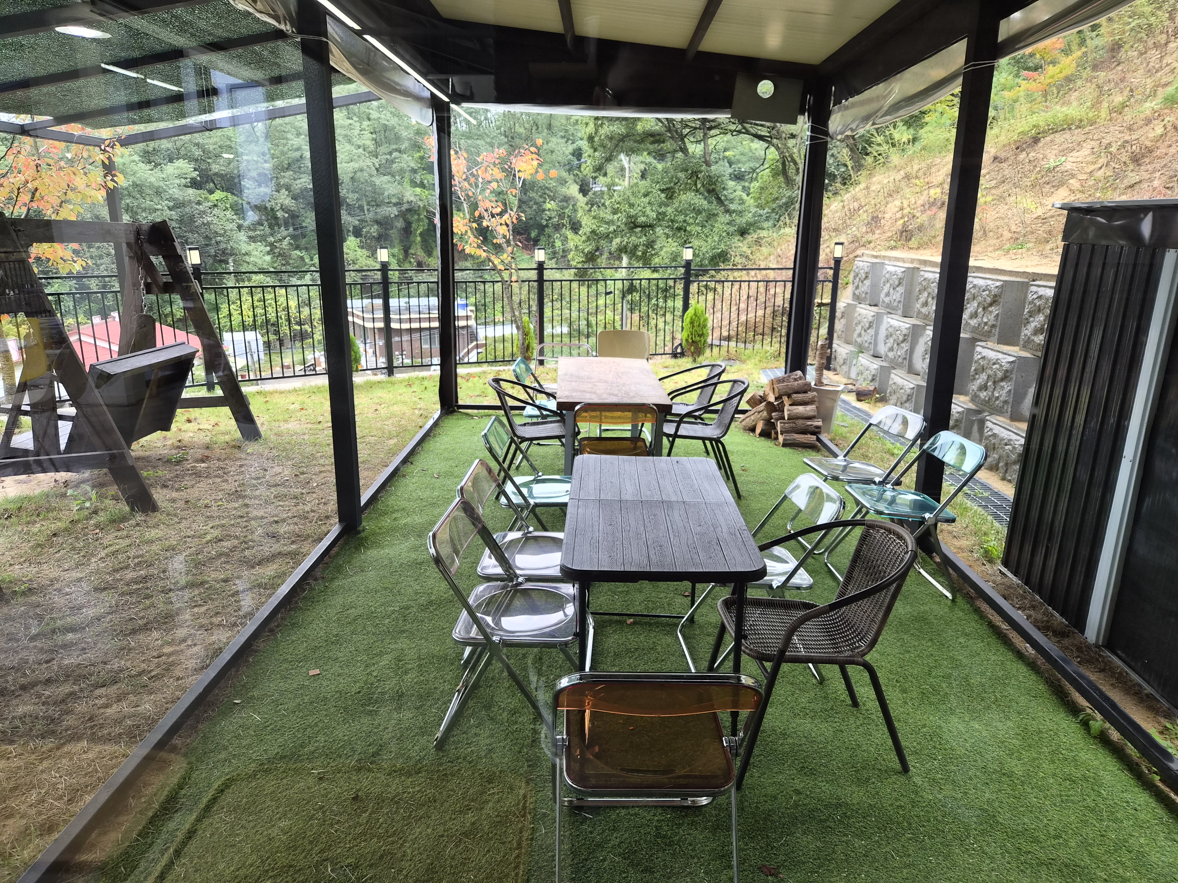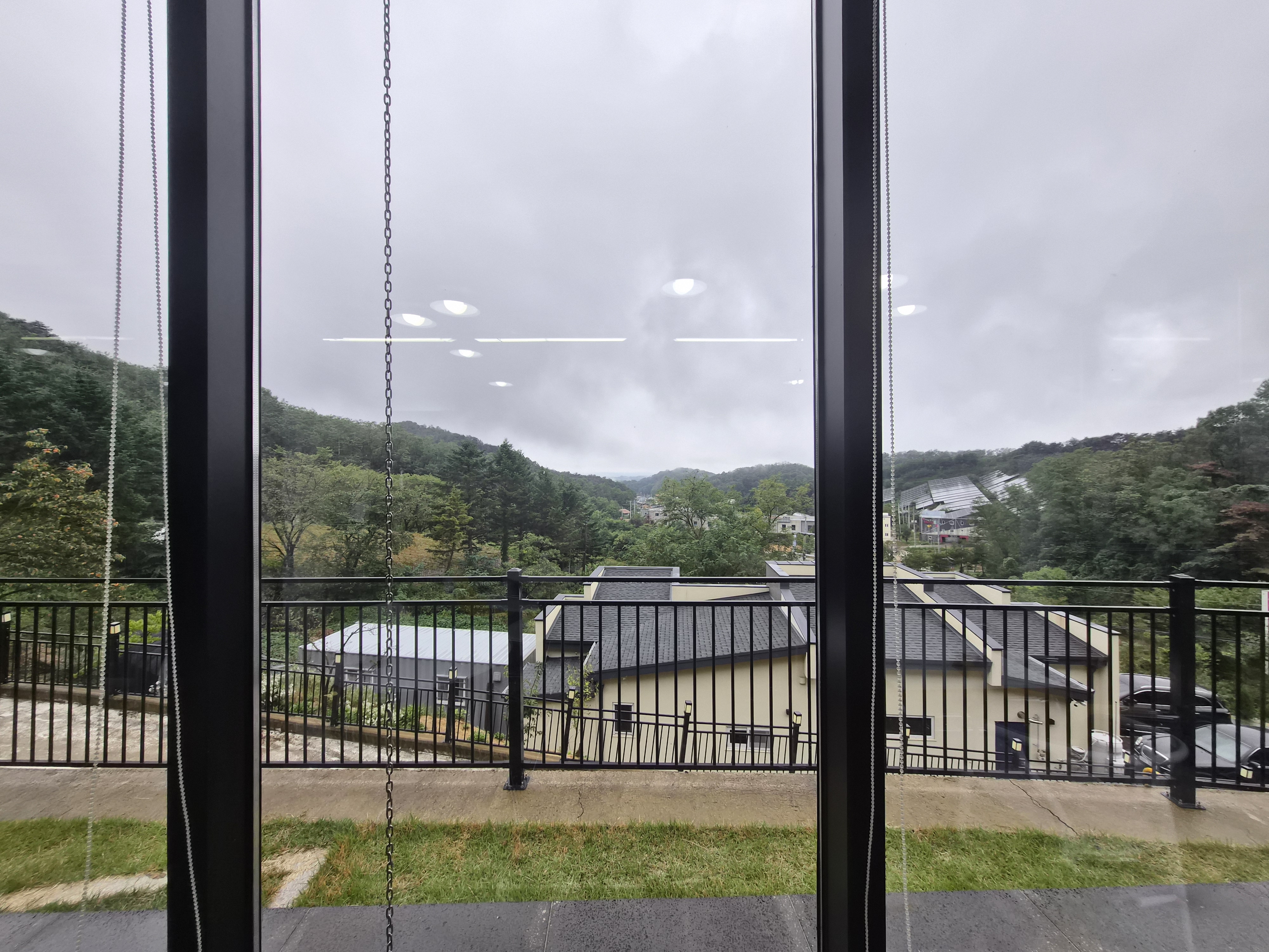 주문 후 카페를 잠깐 더 둘러보았어요. 야외공간도 멋지게 꾸며둔게 인상적이었는데요. 카페 중앙 부분에서는 폴딩 도어를 활짝 열어젖혀, 카페 안과 밖의 경계를 허문 개방감있는 곳도 인상깊었어요. 야외공간으로 이어지는 곳이었습니다. 시원한 산바람이 에어컨 바람을 대신해 실내를 가득 채우는 기분 좋은 공간이었습니다.