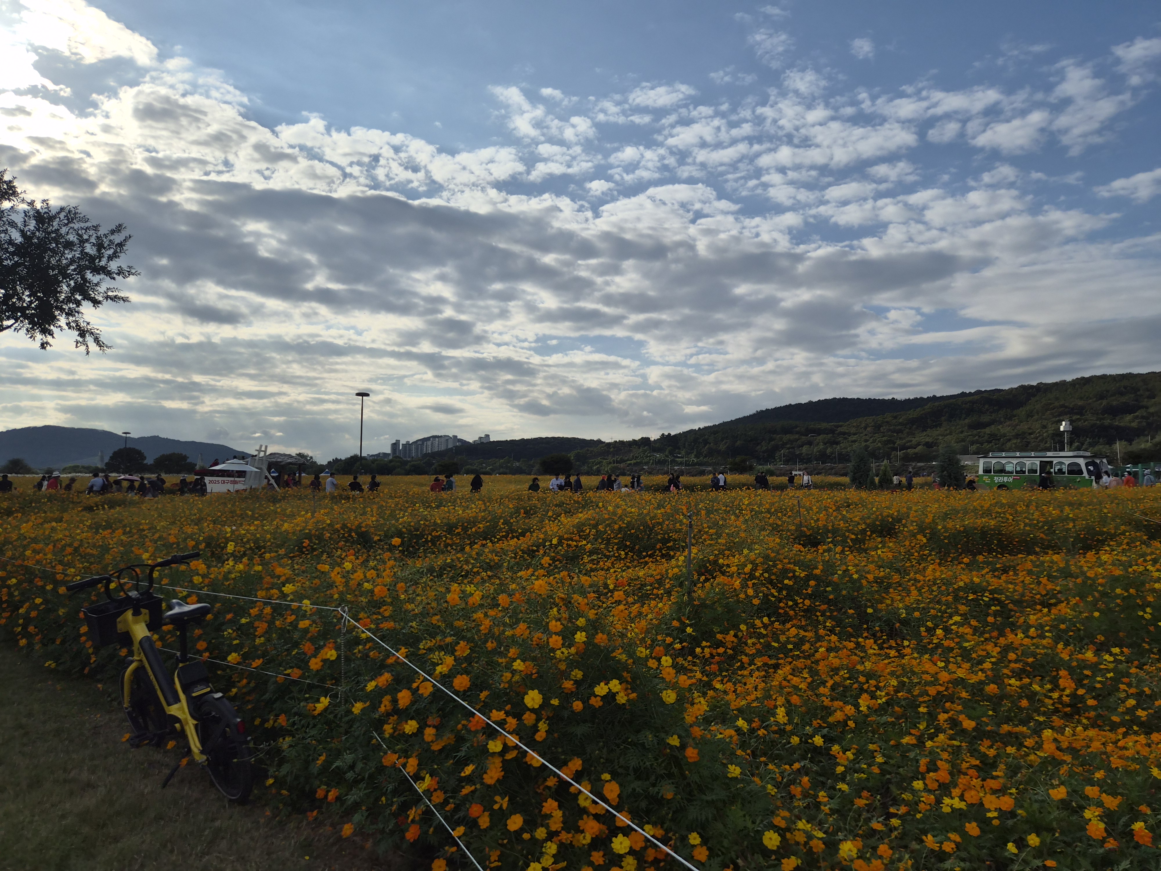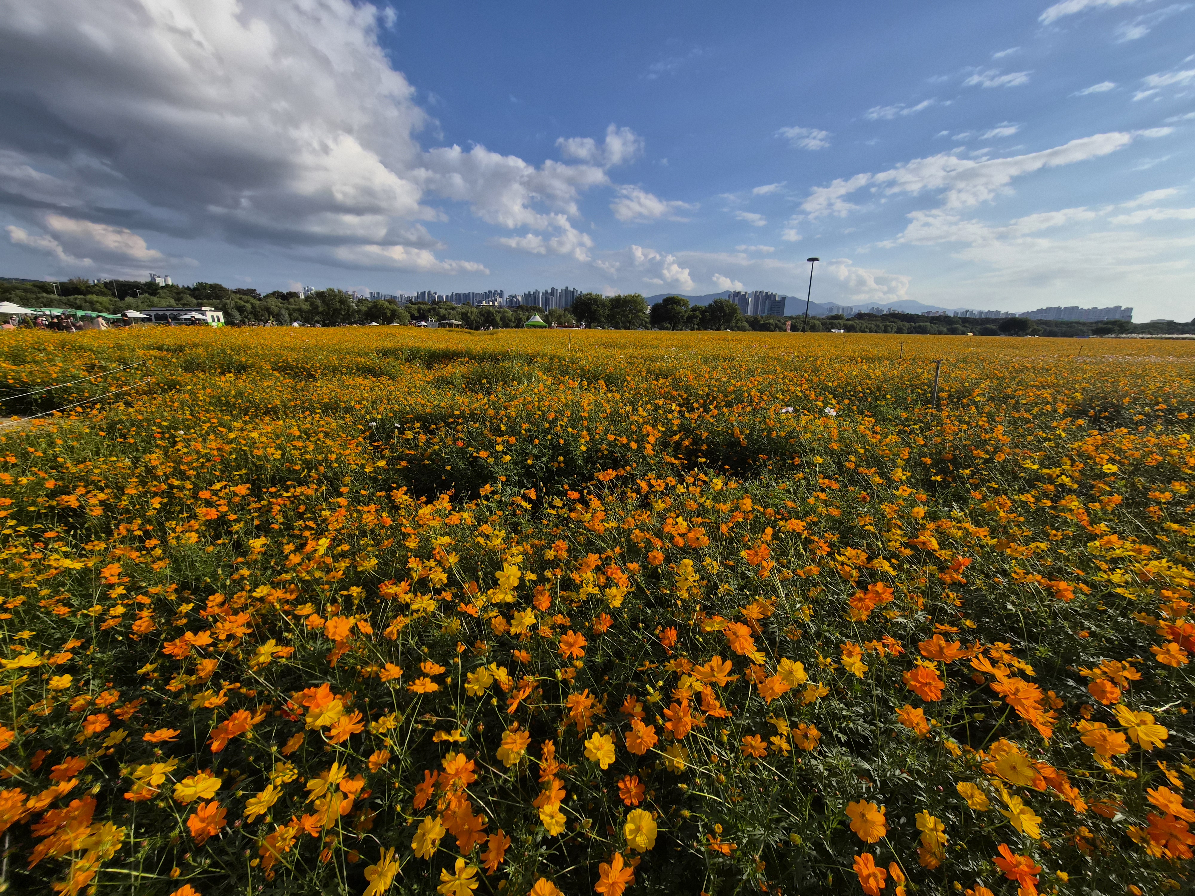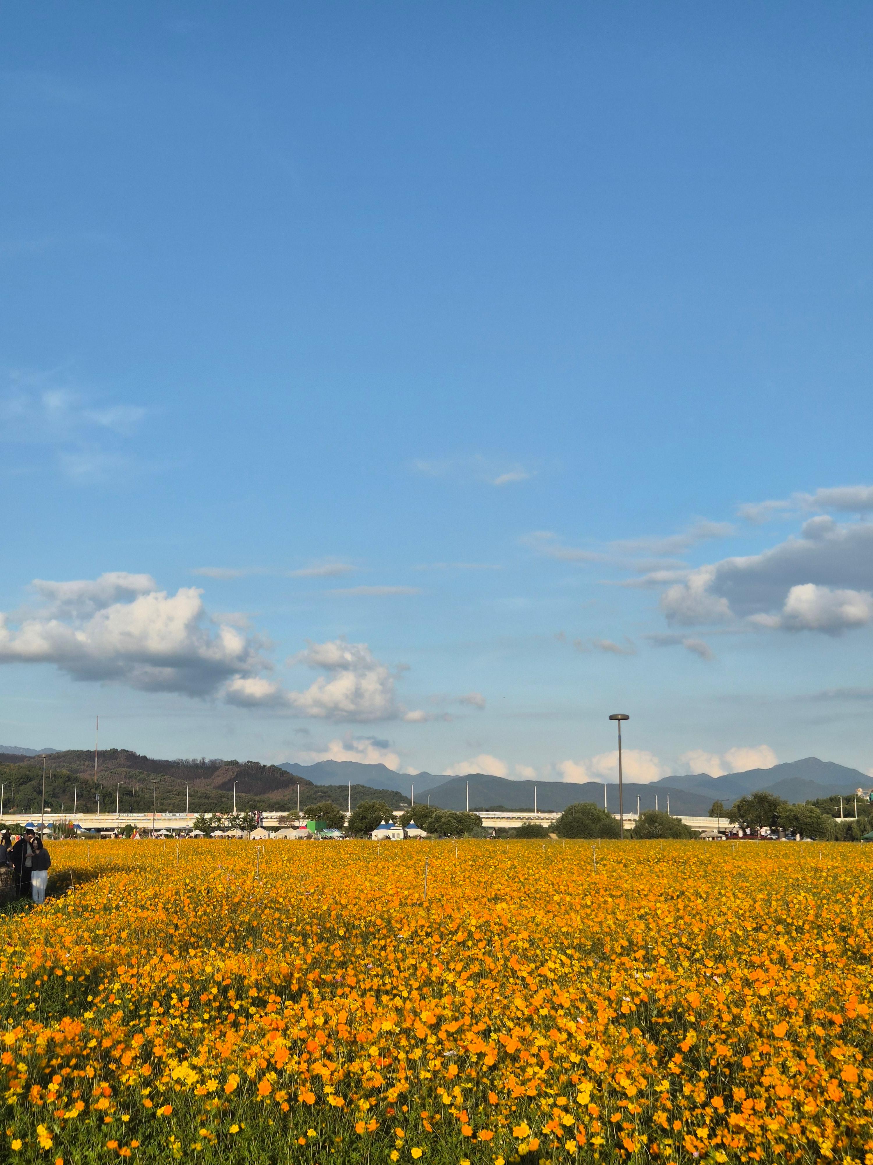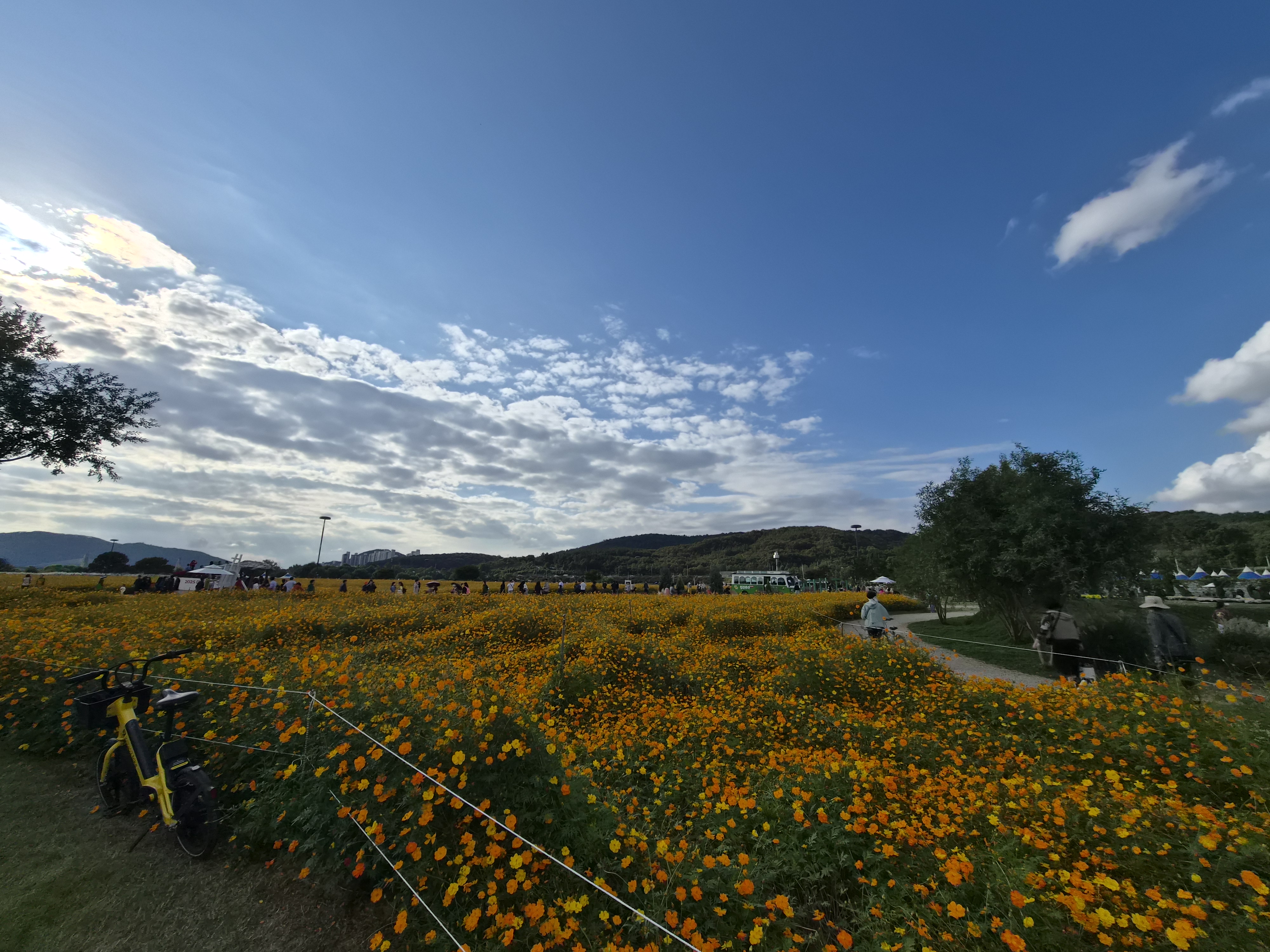 개인적으로 더 예뻤던건 황하코스모스 단지. 노란색 물결이 출렁이는걸 볼 수 있다.