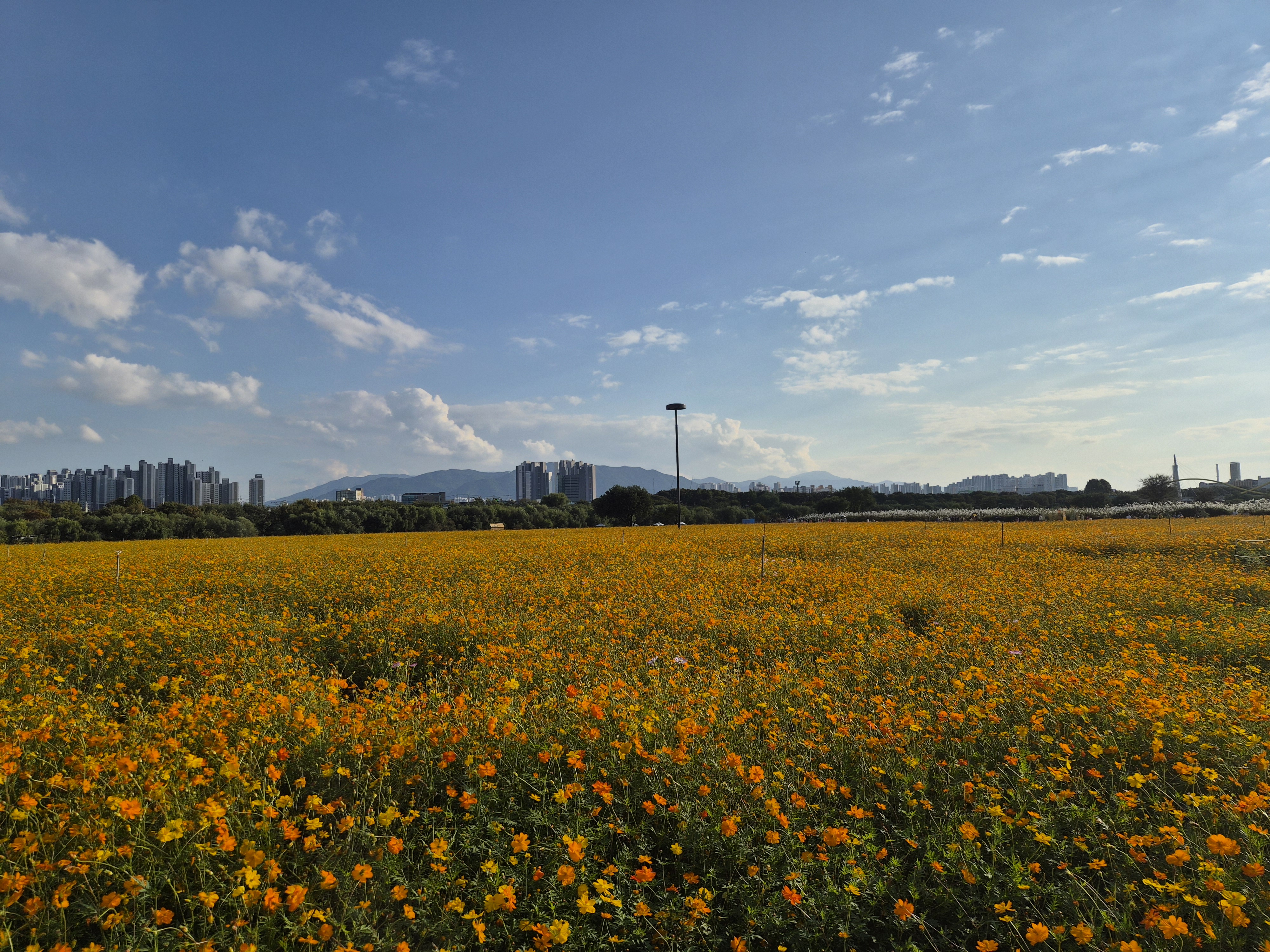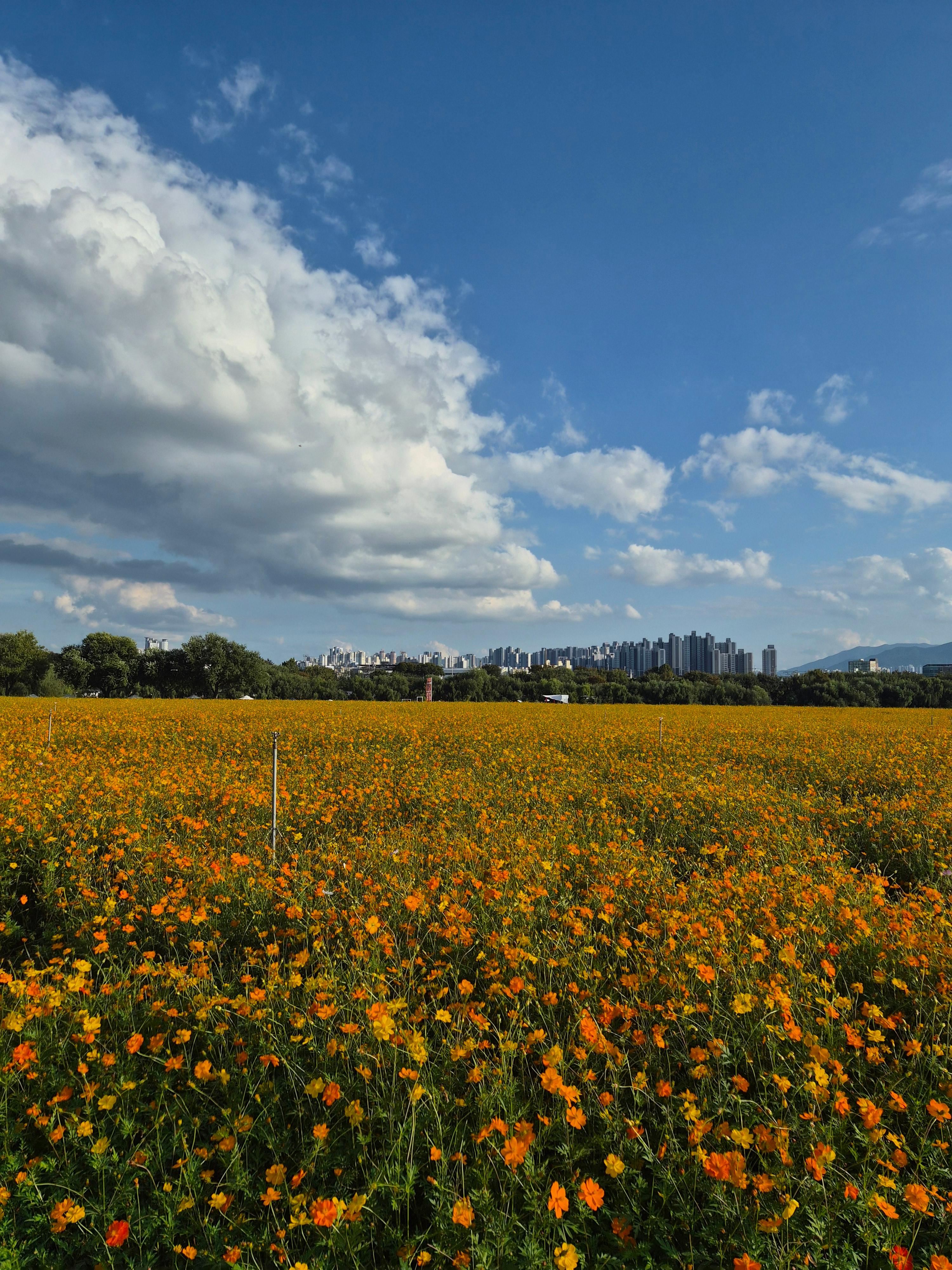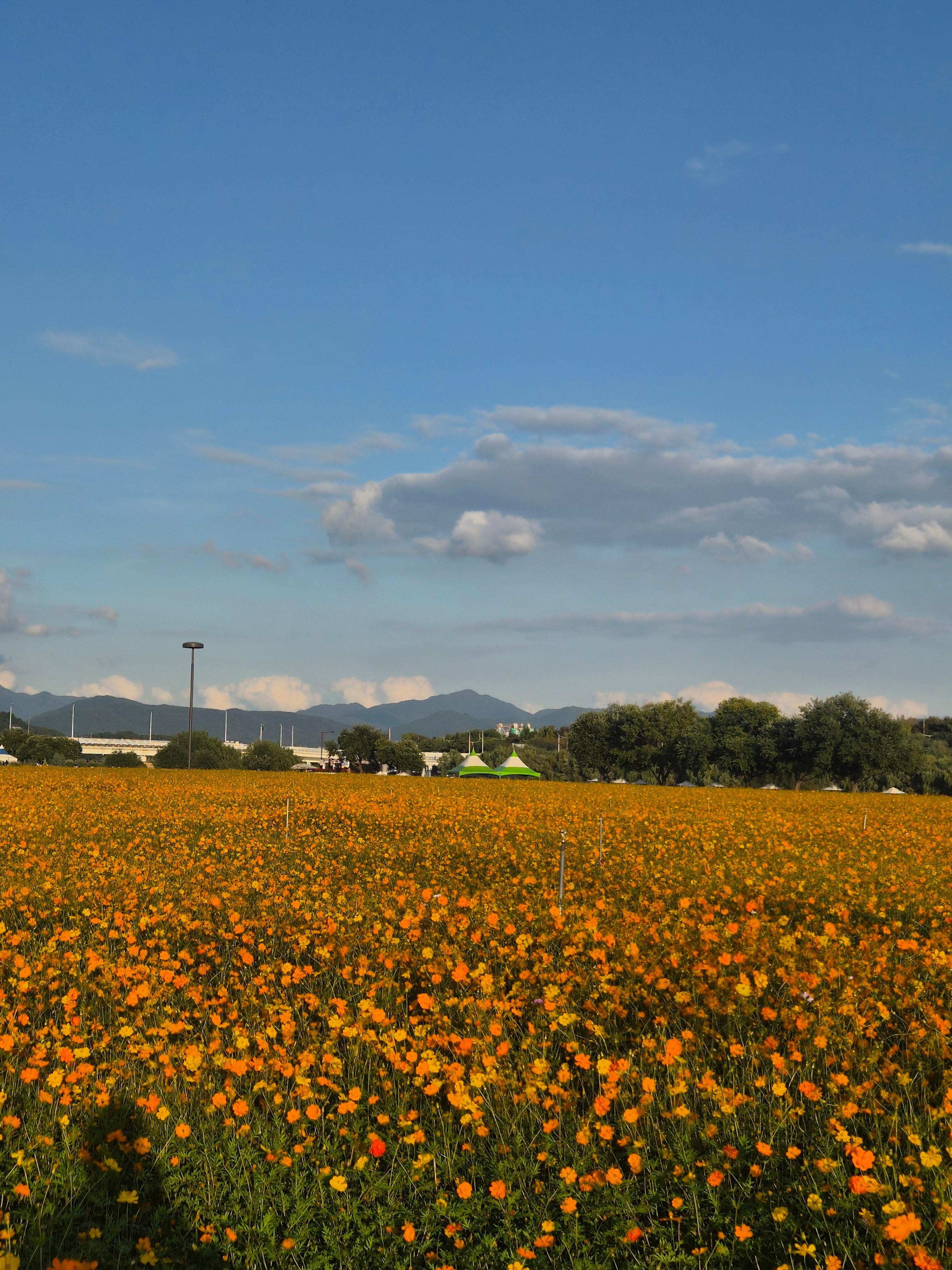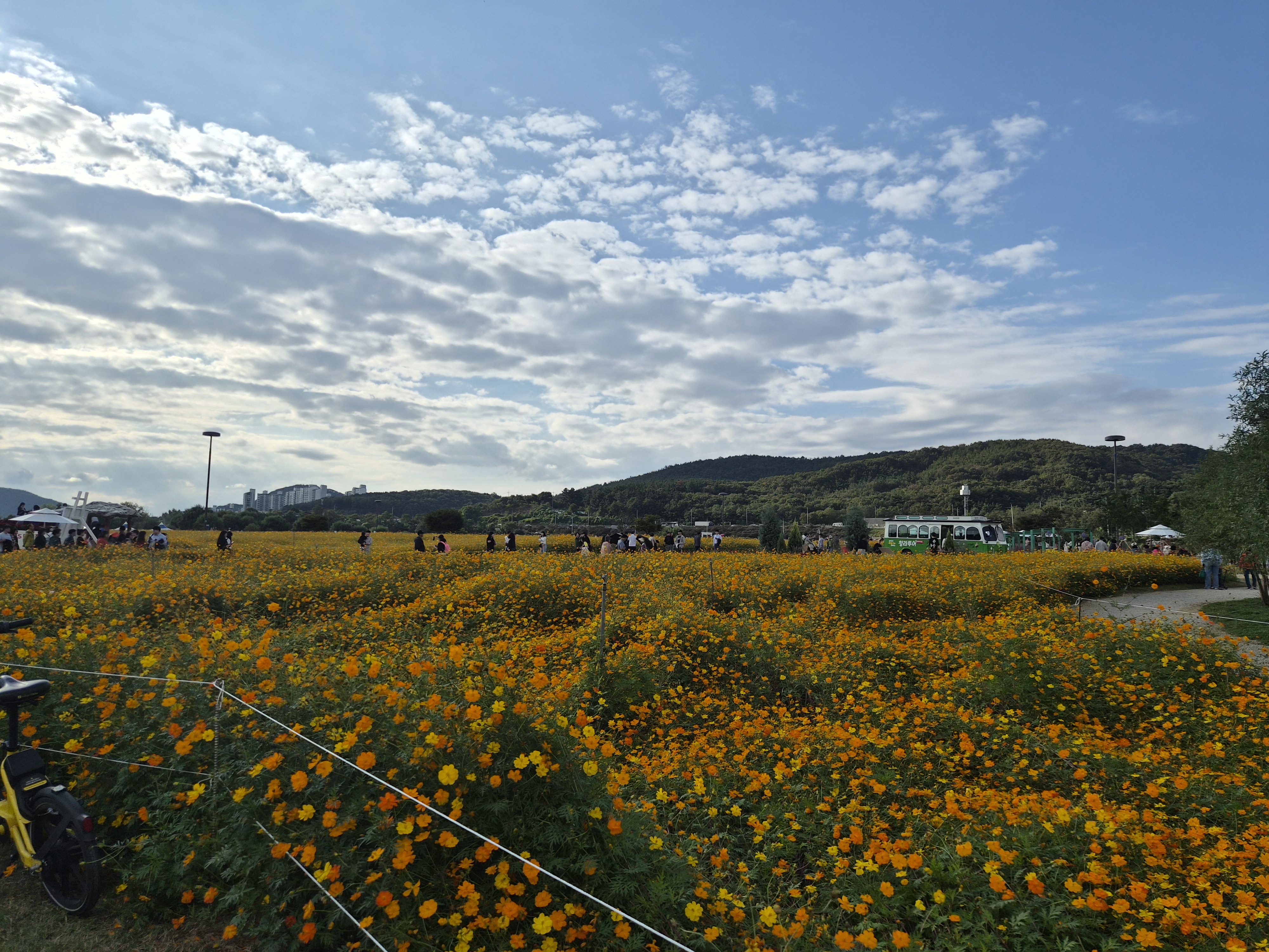 개인적으로 더 예뻤던건 황하코스모스 단지. 노란색 물결이 출렁이는걸 볼 수 있다.
