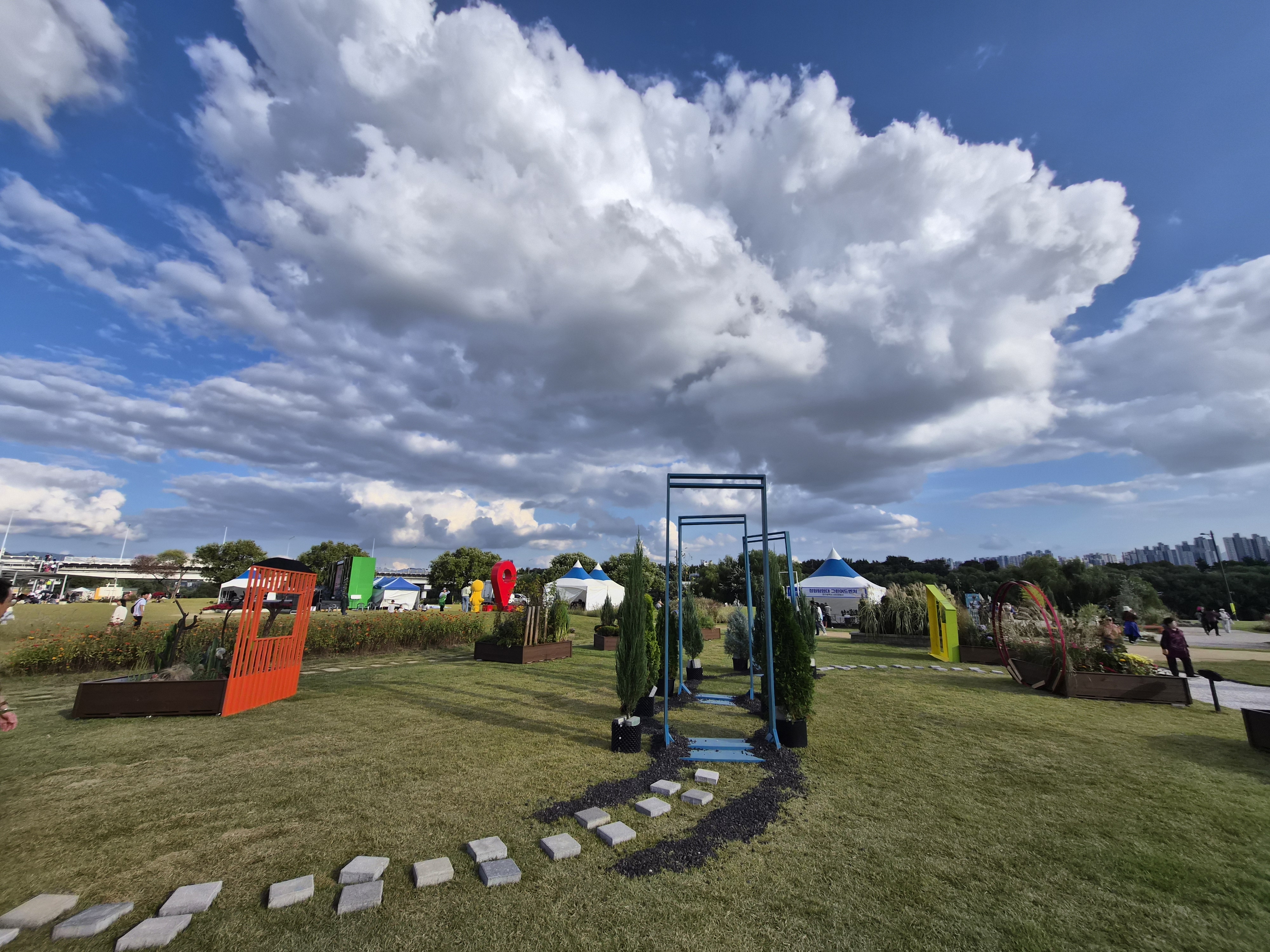 차막힐게 뻔하고 주차장 자리 없을것 같아서 버스타고 도보로 이동. 탁월한 선택이었다. 이미 하중도 주차장 입구쪽에서부터 걷는것보다 느린 차들 밀려있었다. 오후 시간대 방문. 마침 날씨가 좋아서 꽃 구경 제대로 할 수 있었다.