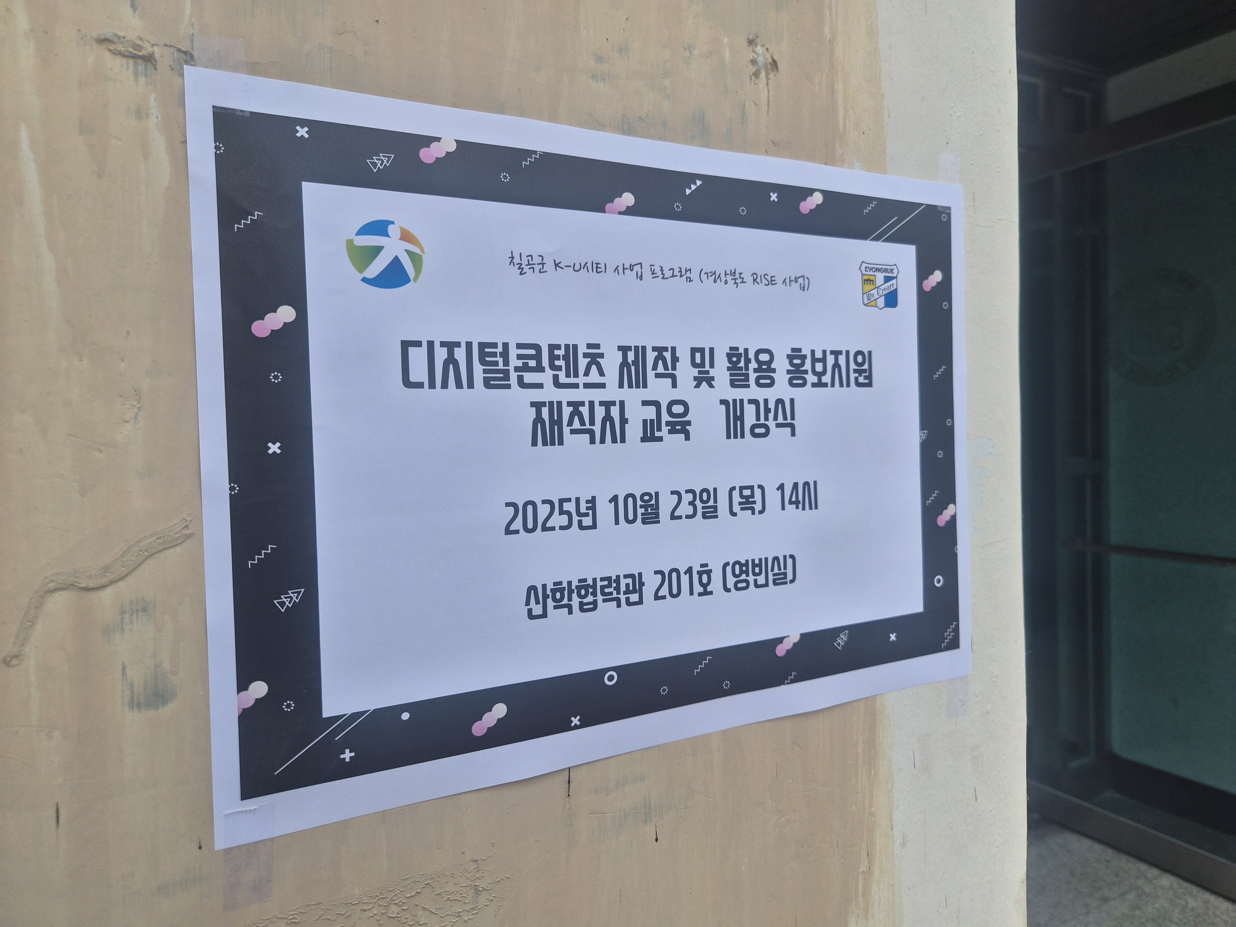 경북과학대학 산학협력단과 칠곡군, K-U시티 사업 과정에서 진행되는 홍보 영상 제작 지원 디지털콘텐츠 재직자 교육 강의 다녀왔습니다.