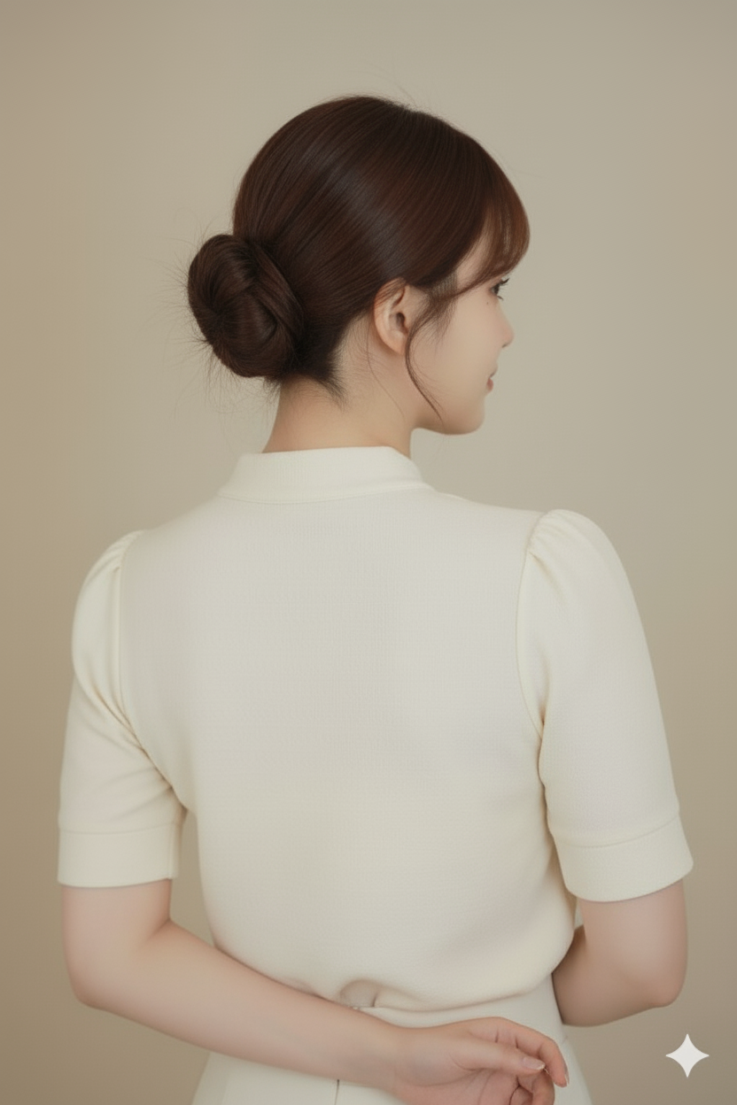 프롬프트: "목걸이를 제거하고 밝은색 옷을 흰색 셔츠로 바꾸세요. 외투는 검은색으로 바꾸세요."