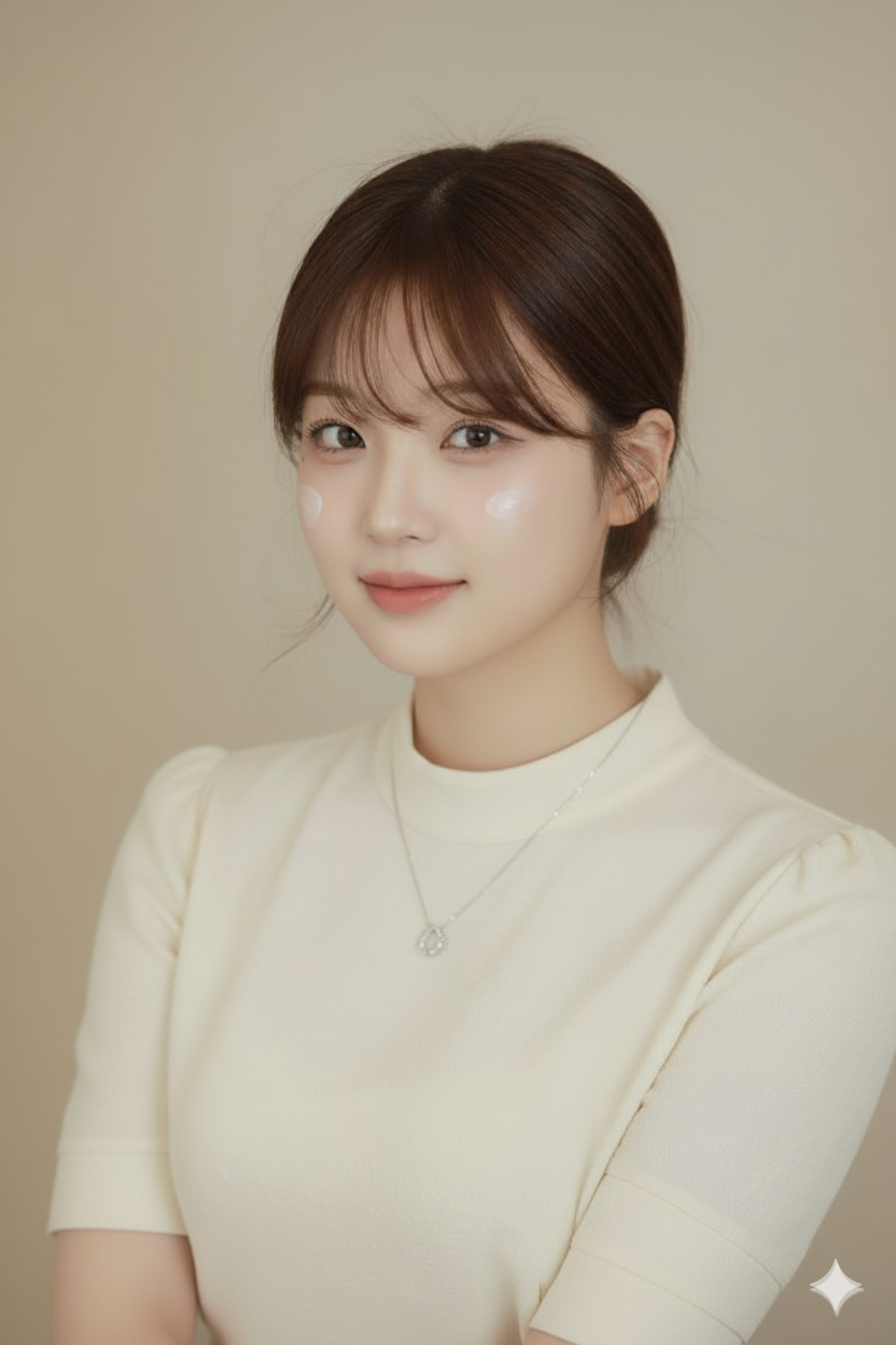 프롬프트: "화장품을 얼굴 양쪽 볼에 바른 모습."