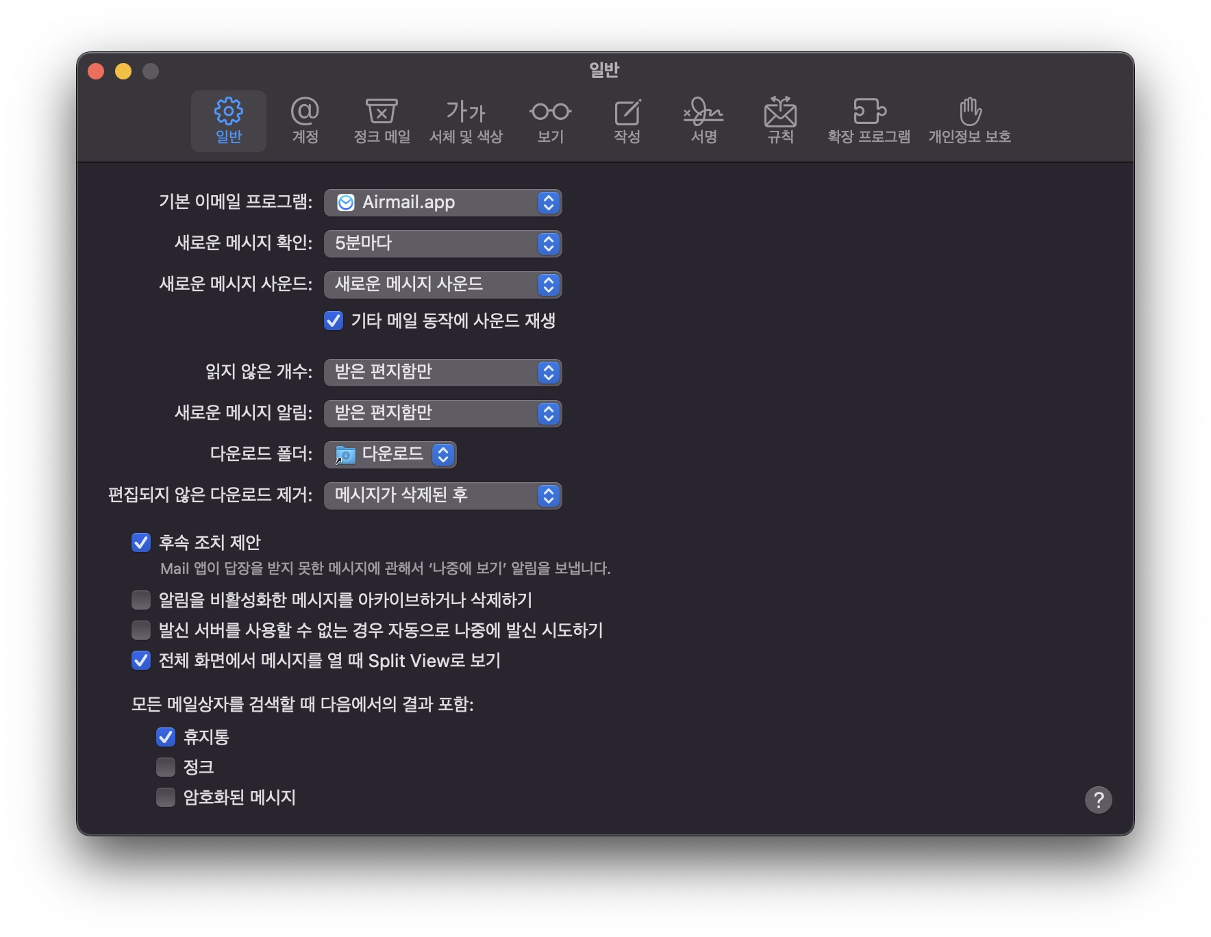 맥북 기본 메일 앱은 로컬에 메시지 저장하는 기능 빼지 않는 이상... 앞으로도 쓸 일이 없을 것 같다.