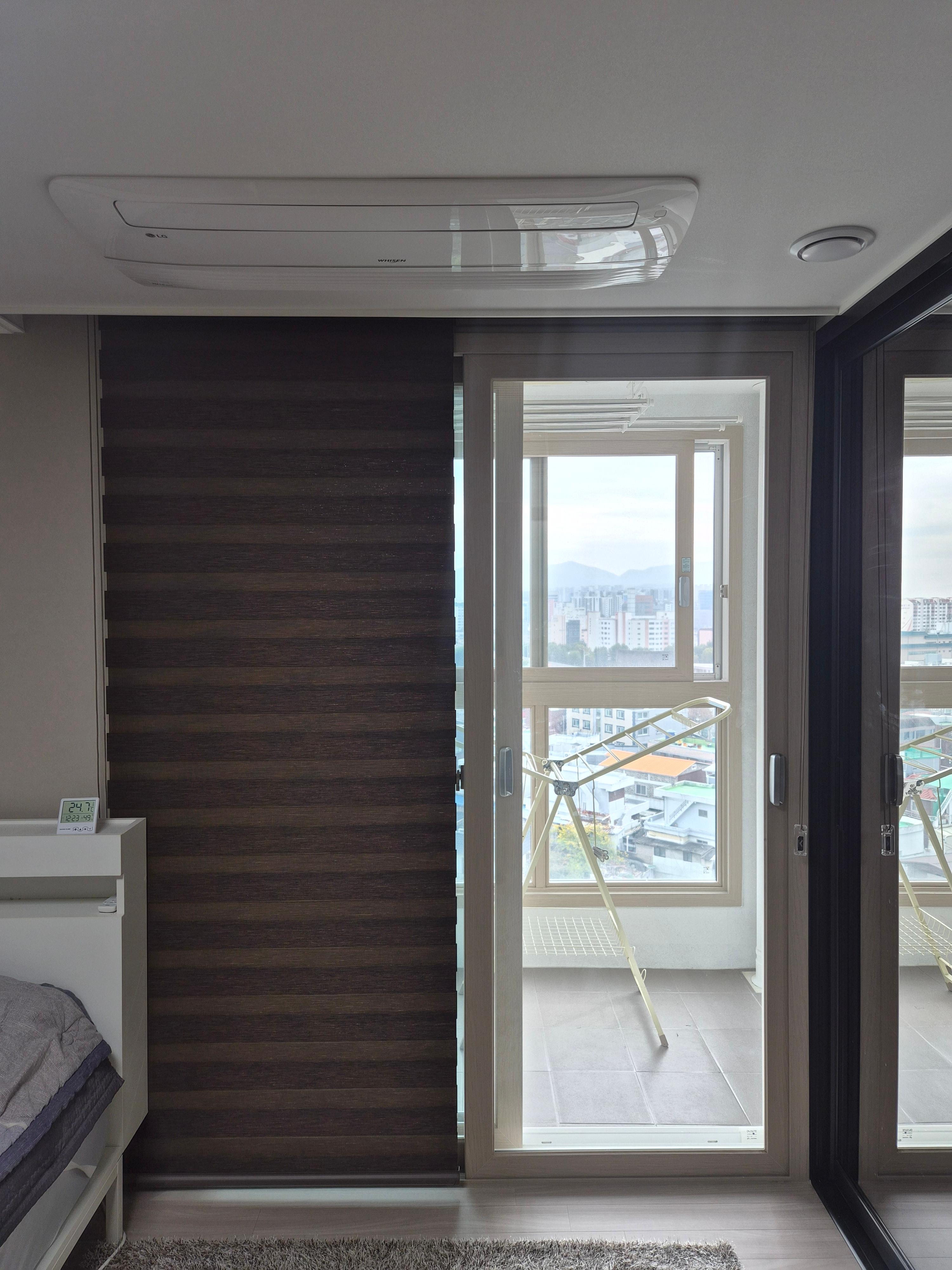기존에 설치되어 있던 블라인드. 이건 예전 아파트에서도 안방에 설치되어 있던 녀석이었는데 사이즈가 대충 얼추 맞아서 그대로 들고와서 설치해서 쓰고 있었다. 색깔은 좀 안어울렸던듯 한데 솔직히 큰 불편함없이 잘 쓰고 있었다. 유일하게 불편했던점이라면, 베란다쪽으로 나갈 때 블라인드를 잡아 올려야하는데 그게 좀 귀찮고, 블라인드가 2개로 나뉘어져 있어서 저 틈 사이로 해가 들어오니까 대낮에는 좀 암막이 잘 안된다는점 정도였다.