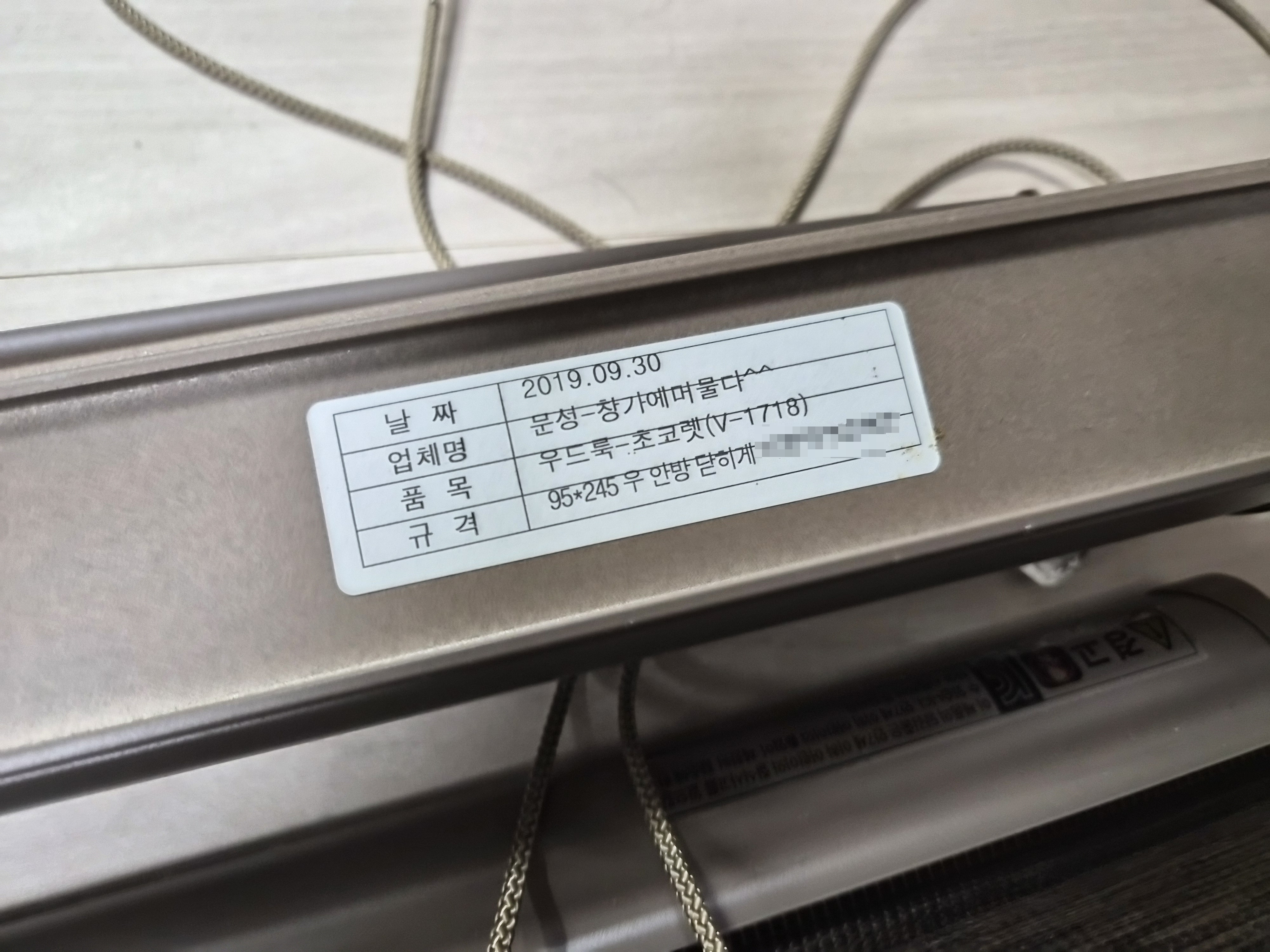 기존에 달려있었다가 떼어낸 블라인드. 블라인드라서 그런지, 아니면 원래 붙여주는건지 모르겠는데 당시에 샀을 때의 기록이 붙어있었다. 안동에 살 때 장만했던 블라인드 안방용이었는데 당시 안동에서 창가에머물다라는 곳에서 장만했었고, 이거 장만했을 때도 기억이 지금 생생하다. 당시 2019년 9월이었다.ㅋㅋㅋ