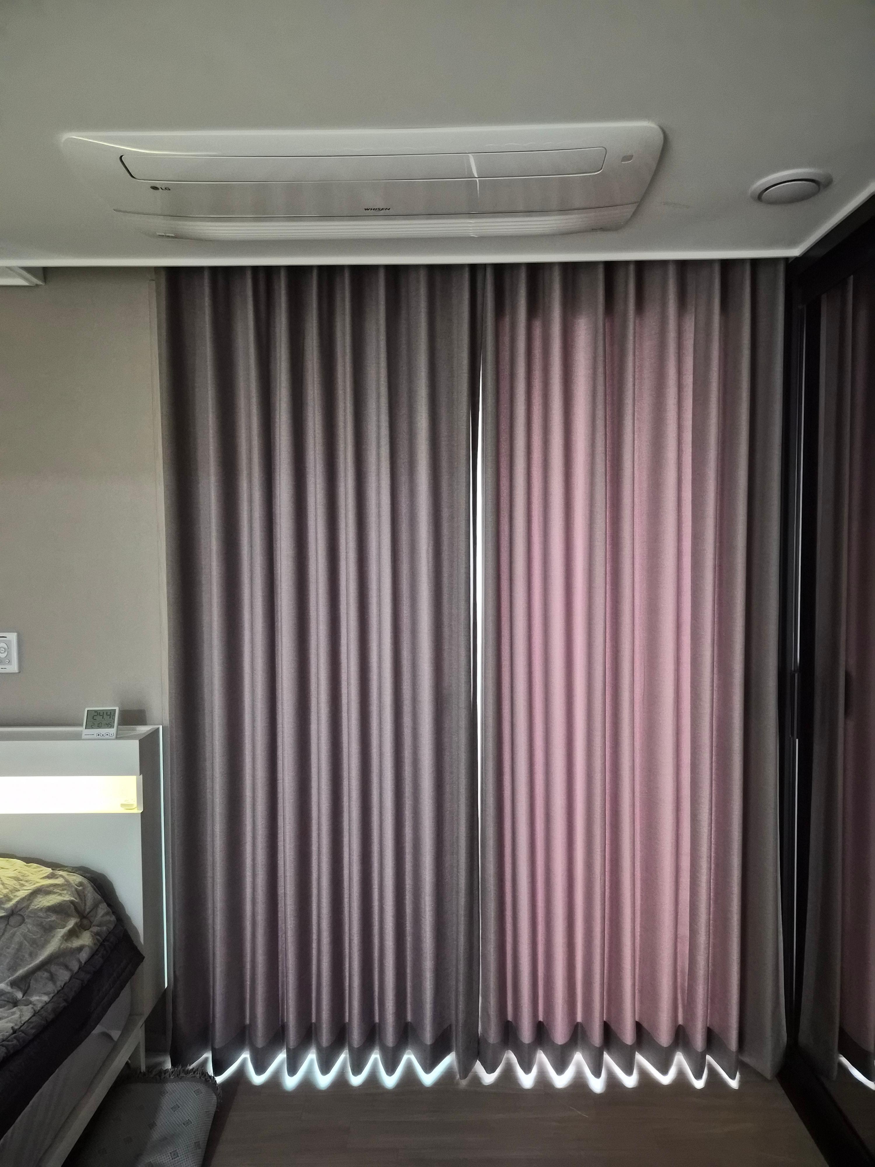 대낮에 보면 이렇게 밖에서 해 들면서 비치면서 뭔가 약간 보라색? 핑크색 느낌이 나도록 보인다. 사진으로 볼 땐 이런데 실제로는 꽤 암막이 잘 되어 있어서 은은한 편이다.