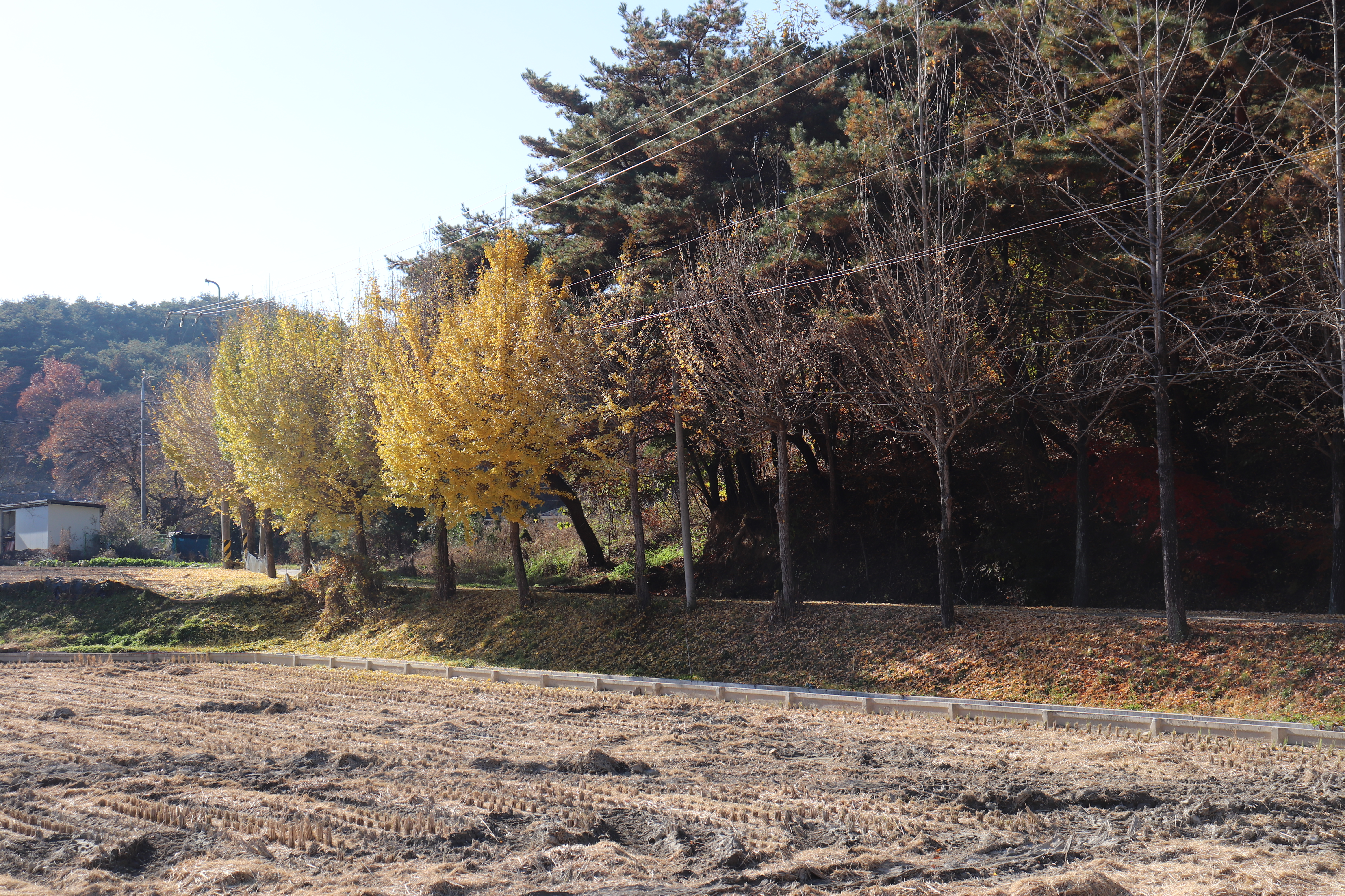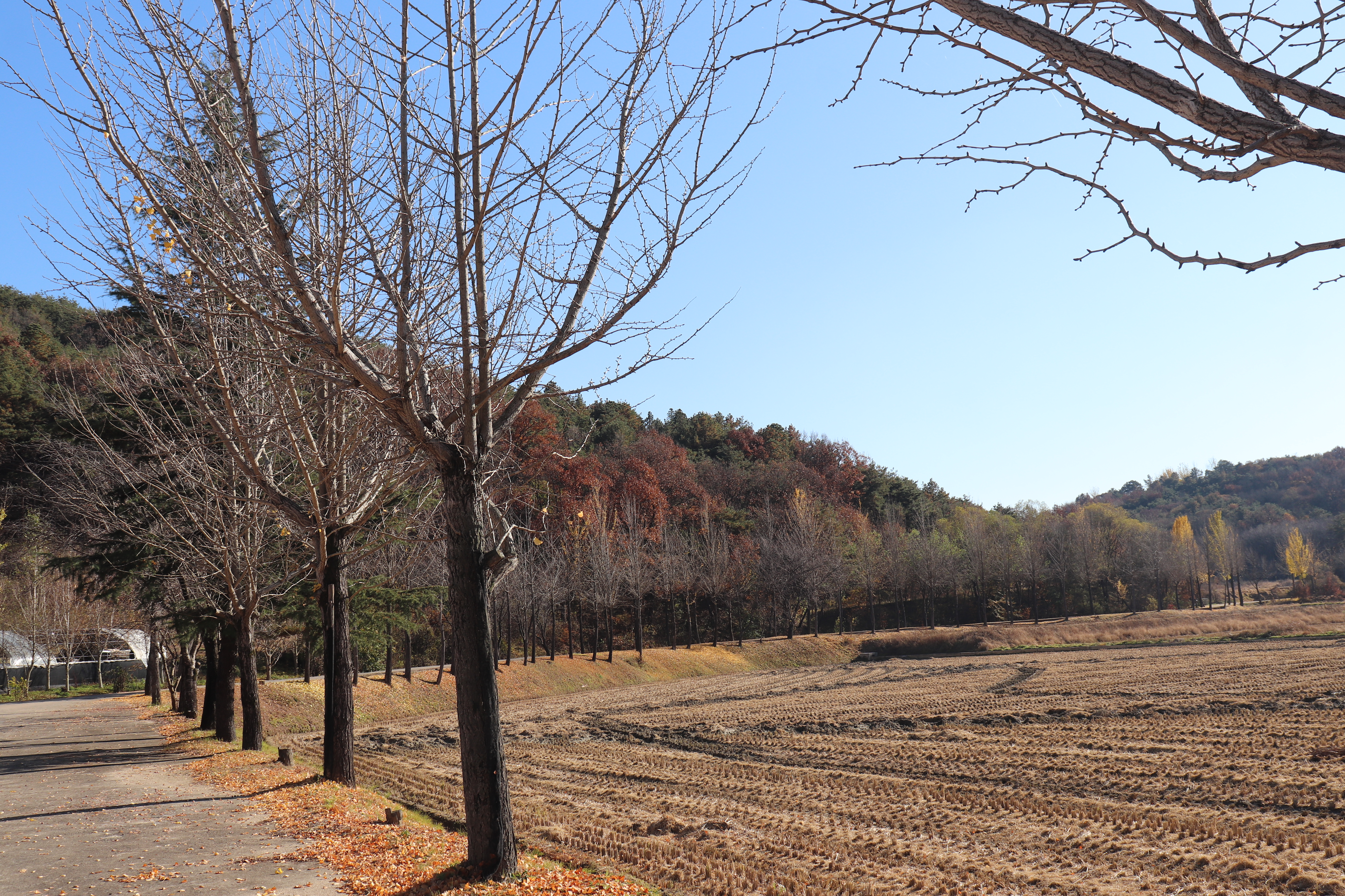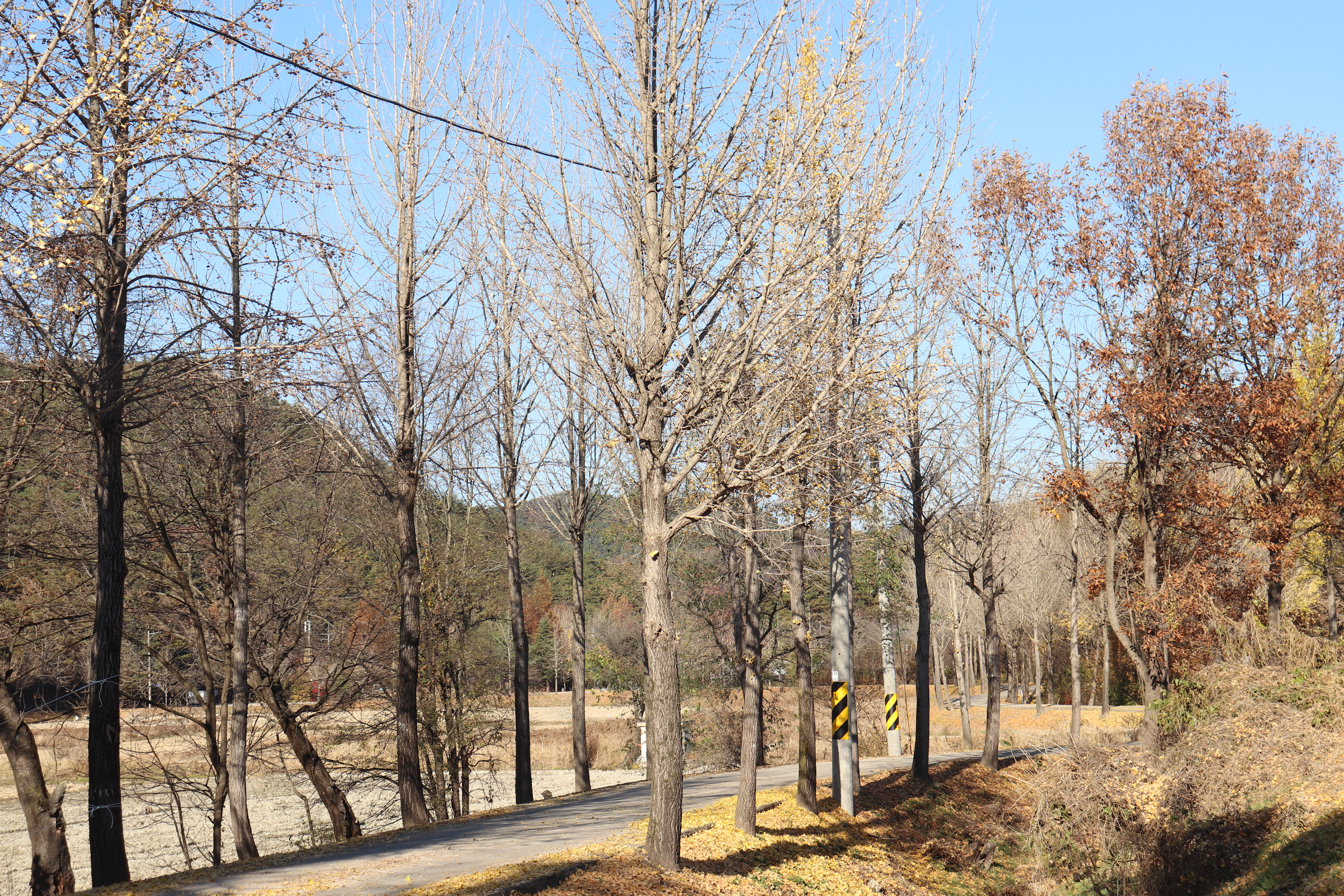 예천 선몽대로 진입하는 길목에도 예쁜 은행나무들이 즐비해있는데요. 11월 중순에 방문하게 되었는데 나무들이 단풍이 떨어지고 있었습니다. 겨울 느낌이 나기 시작한 선몽대의 풍경이었어요.