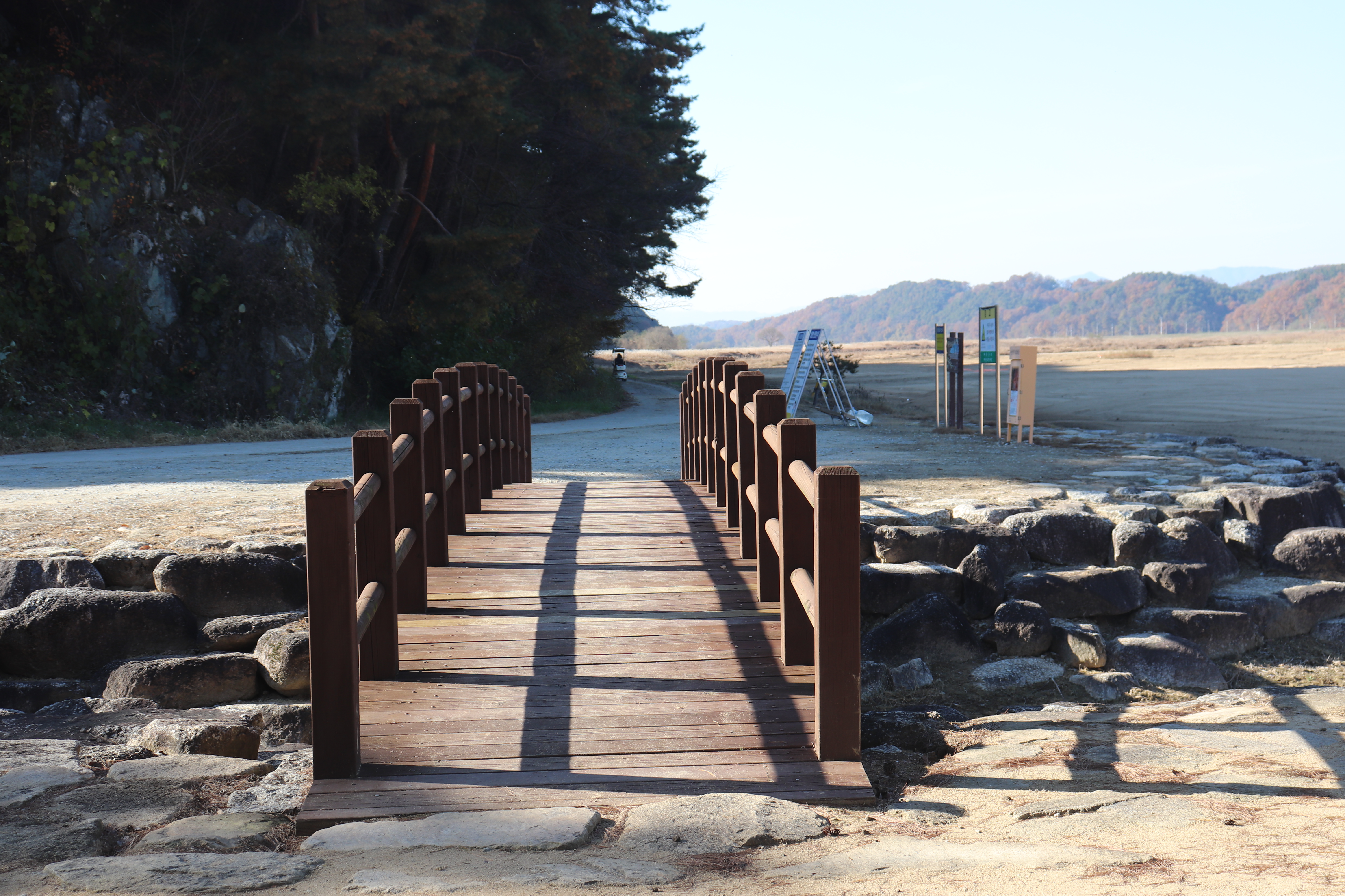 선몽대 뒤로 올라가면 선몽대 특유의 전망과 풍경을 볼 수 있습니다. 유유히 흐르는 내성천의 물줄기와 그 너머로 보이는 가을빛으로 물든 산, 그리고 눈처럼 희고 고운 백사장이 어우러져 예쁜 풍경을 만들어냅니다. 왜 이곳의 이름이 '선몽대'인지 알 수 있는 포인트입니다. 가만히 앉아 바람 소리를 들어봅니다. 복잡했던 마음이 차분하게 가라앉는 기분입니다.