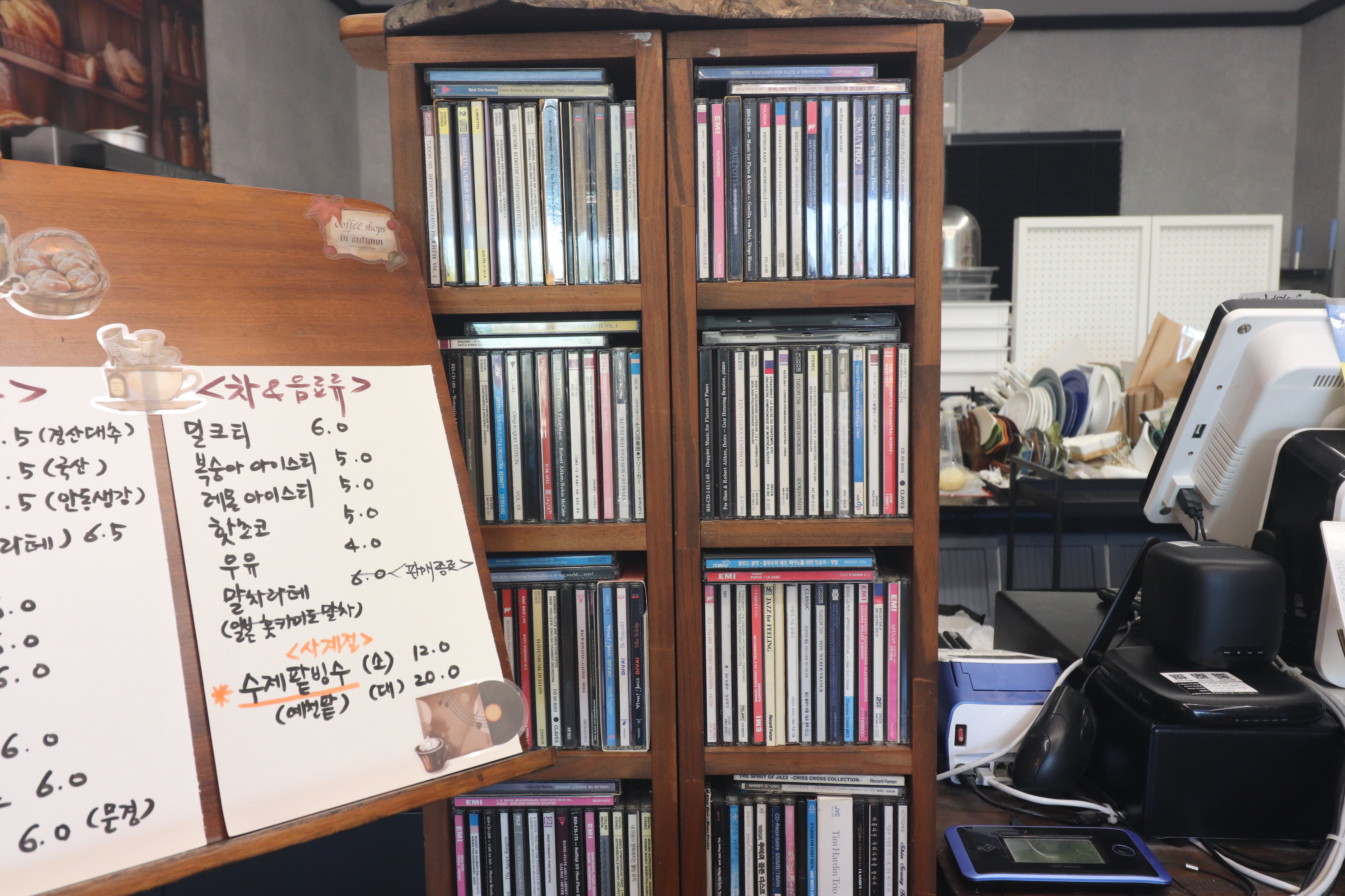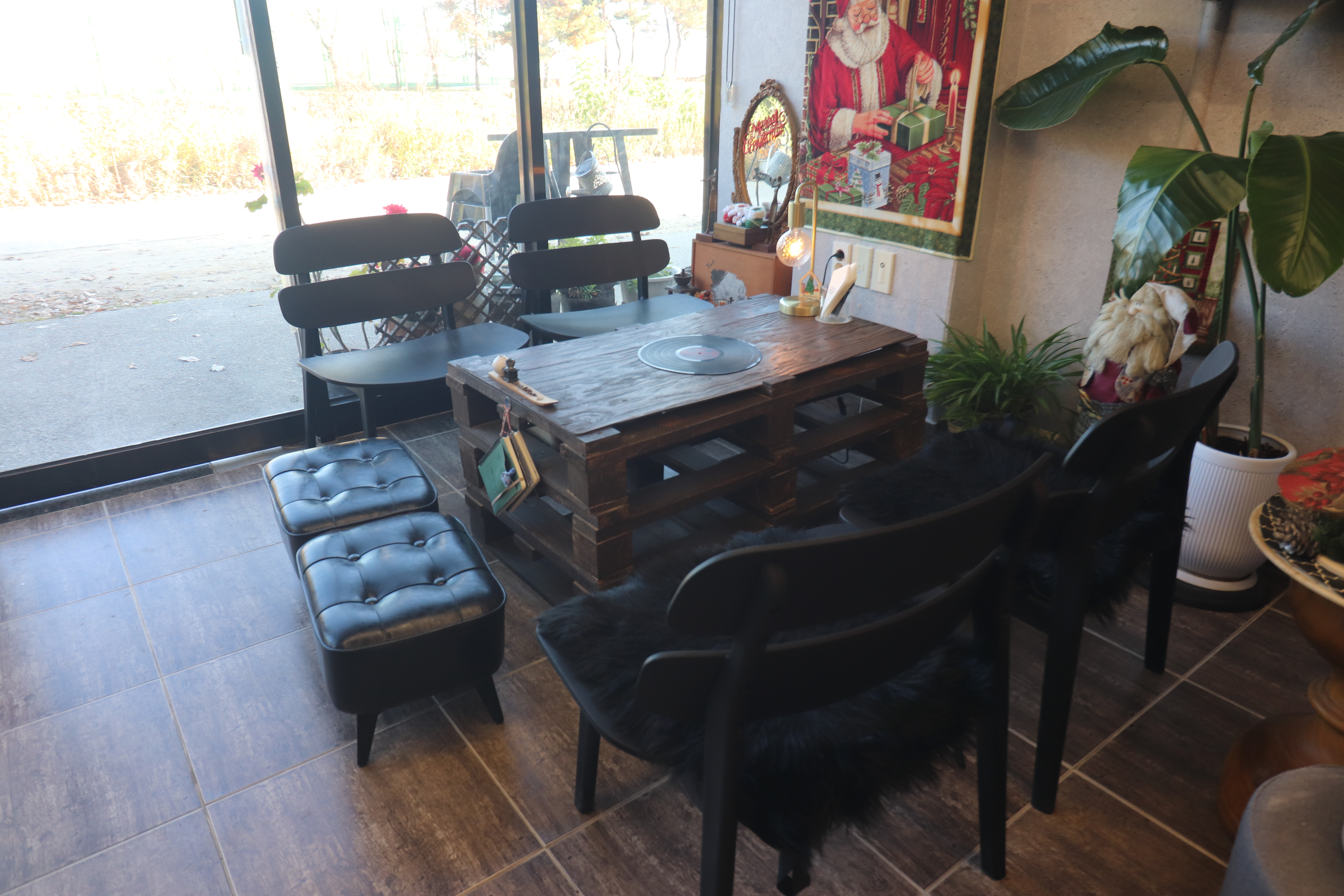 카페 곳곳에 있는 소품들과 아기자기하게 꾸며진 공간들이 참 보기가 좋더라고요. 테이블에는 LP판을 넣어서 독특하게 만들어두었는데 인상적이었습니다. 테이블 간격이 여유로운 편이었고 함께한 사람들과 대화를 나누거나 조용히 사색을 즐기기에 안성맞춤이었습니다.