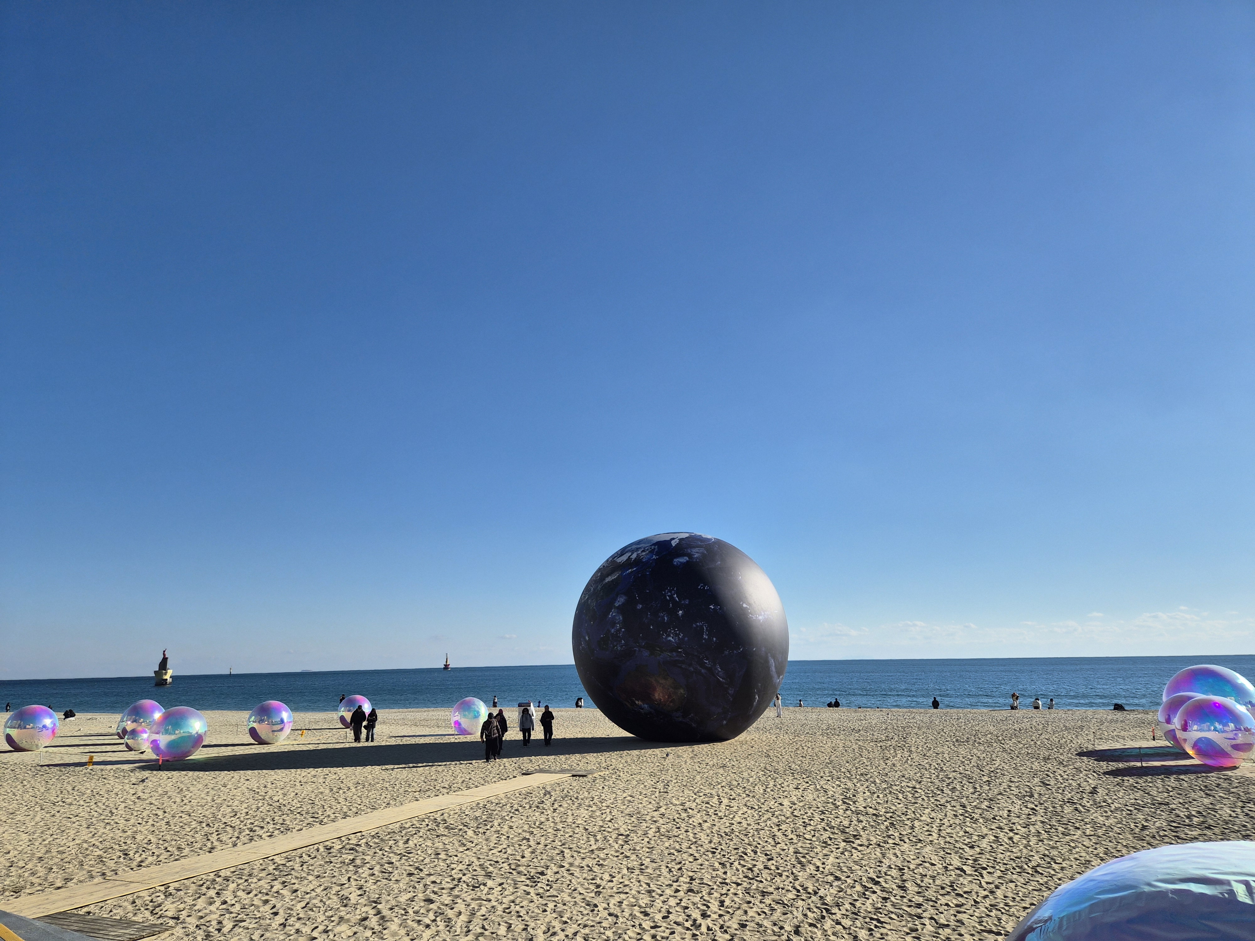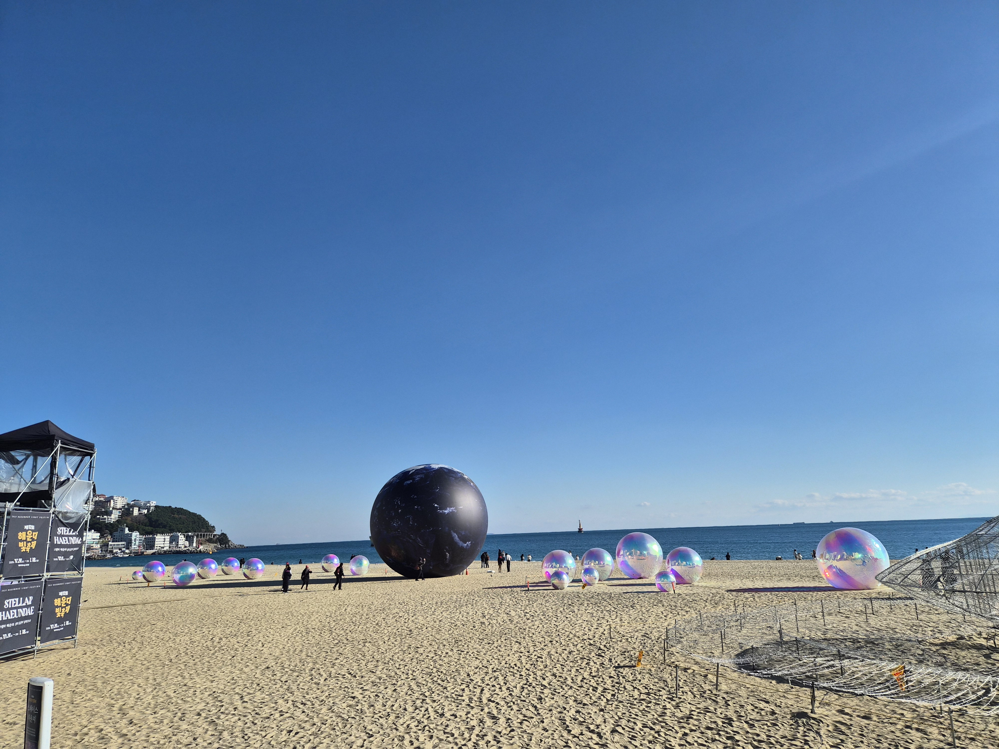 이 시기 해운대에서는 해운대 빛축제 스페이스 라운지라고해서 행사 기간이었던 것 같다. 해수욕장쪽에 구조물이 설치되어 있었는데 볼거리였다.