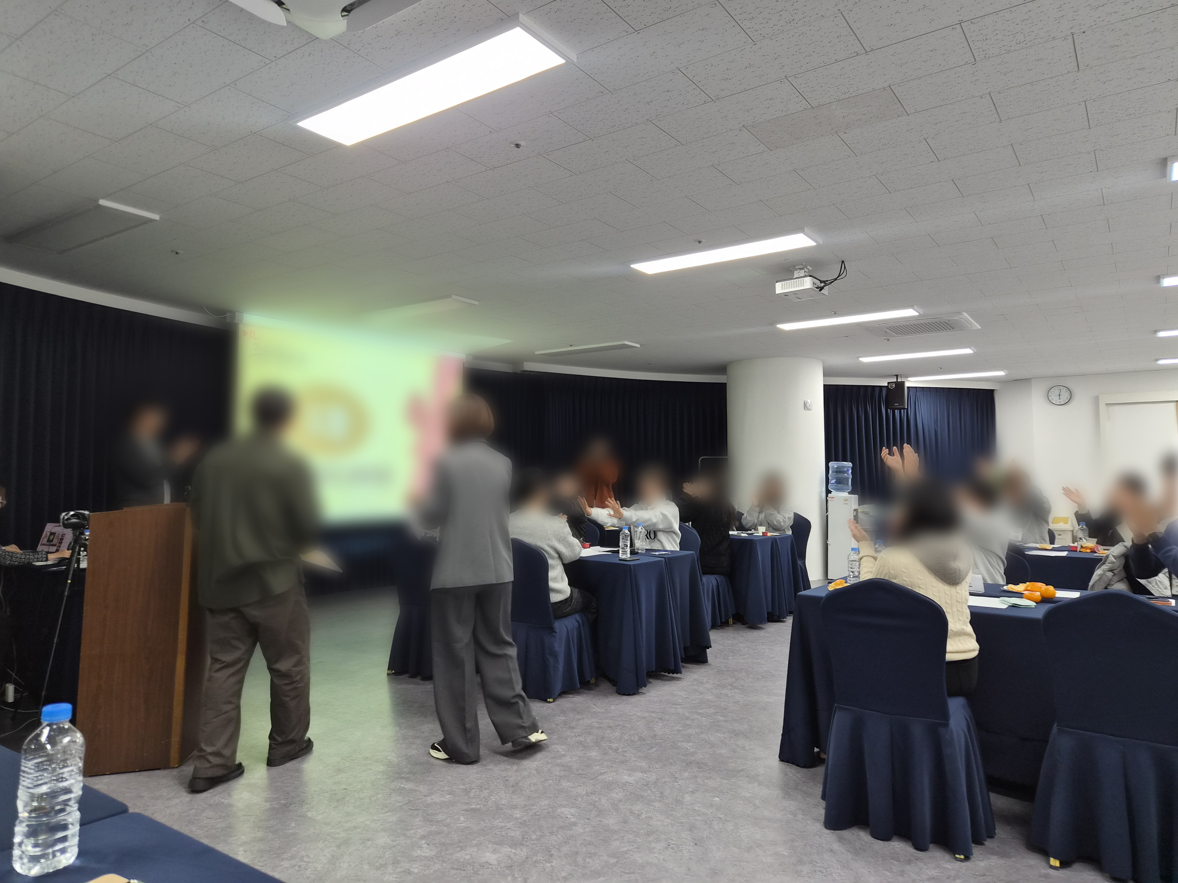 많은 직원분들과 함께 재미있는 강의와 이후 영상 시청회 시간이었던 것 같습니다. 실제로 실습 과정에서 직원분들과 이런저런 이야기를 나누는데, 한 분께서 예전에 파이널컷으로 영상 편집 공부하거나 궁금한게 있을 때 제가 운영중인 유튜브 채널을 보신적이 있다고 말씀해주셔서 깜짝 놀라가지고 얼굴 빨개졌었네요...ㅎㅎ 얼굴로는 못 알아봤었고 목소리 들어보니까 알게 되었다라고 하셨었네요...ㅋㅋ
