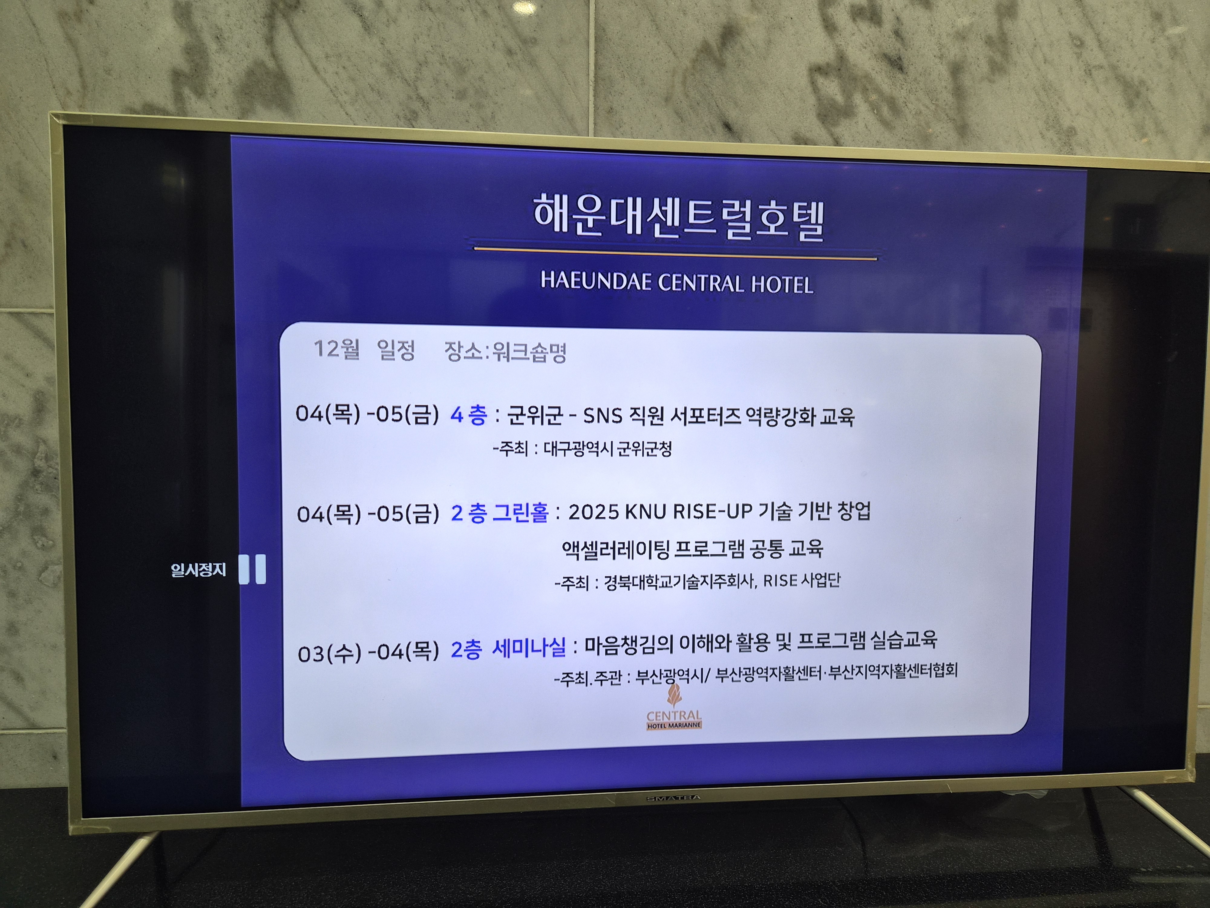 이번에 처음 가 본 부산 해운대센트럴호텔에서 강의 진행되었습니다.