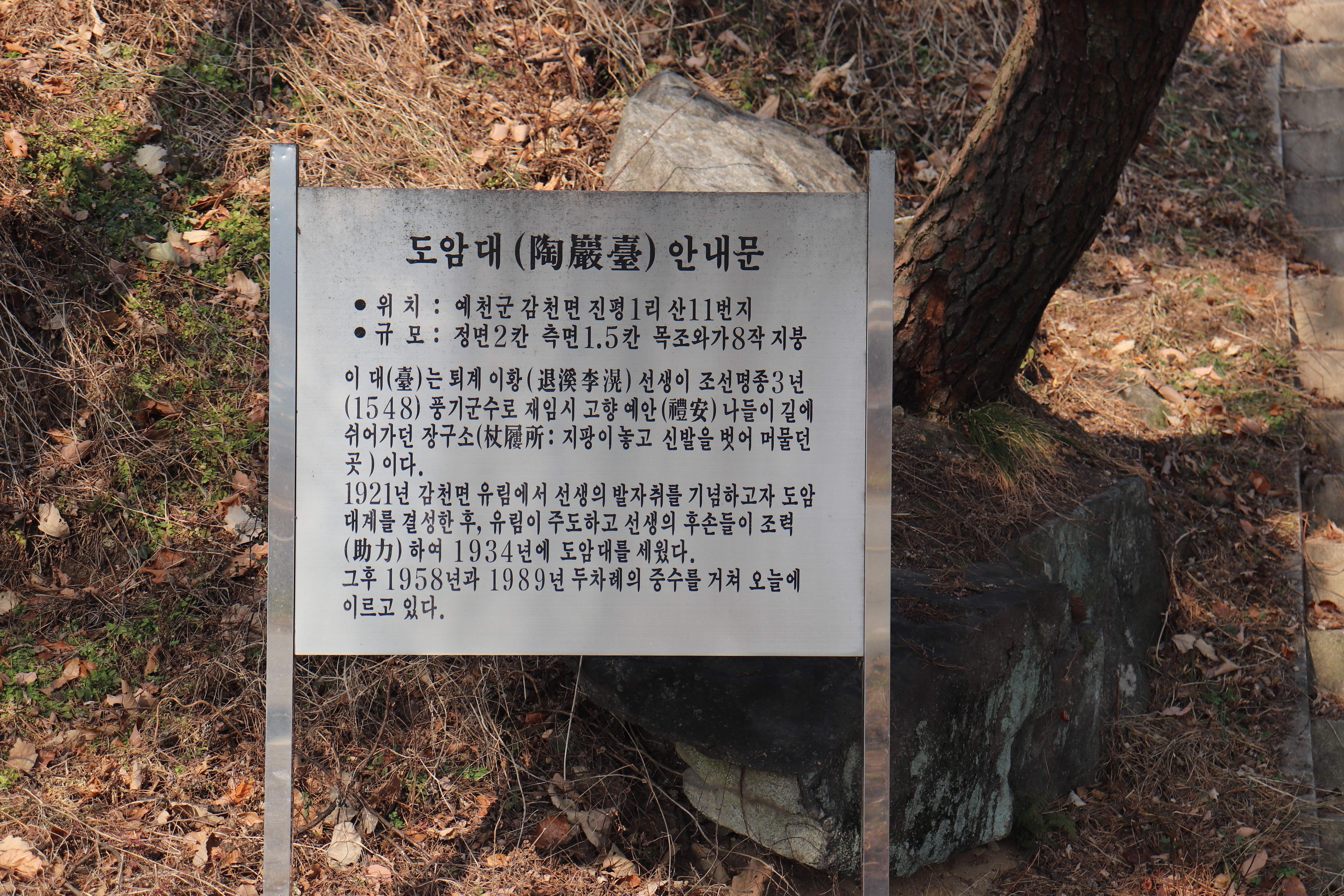 도암대는 사진으로보기보다는 실제로 보면 훨씬 더 아름답고 멋진 곳이기도 합니다. 개인적으로는 무척 아쉽다고 생각하는 부분이지만, 도암대는 안쪽으로 들어갈 수는 없지만 계단으로 올라가서 살짝 담 넘어서 구경은 해볼 수 있습니다. 예천이라는 고장 자체가 산이 예쁜 곳이고 경관이 수려한 곳인데요. 도암대가 이러한 예천 특유의 경관을 잘 살린 곳이라는 생각이 듭니다. 퇴계선생의 마음을 사로잡았을만큼요.