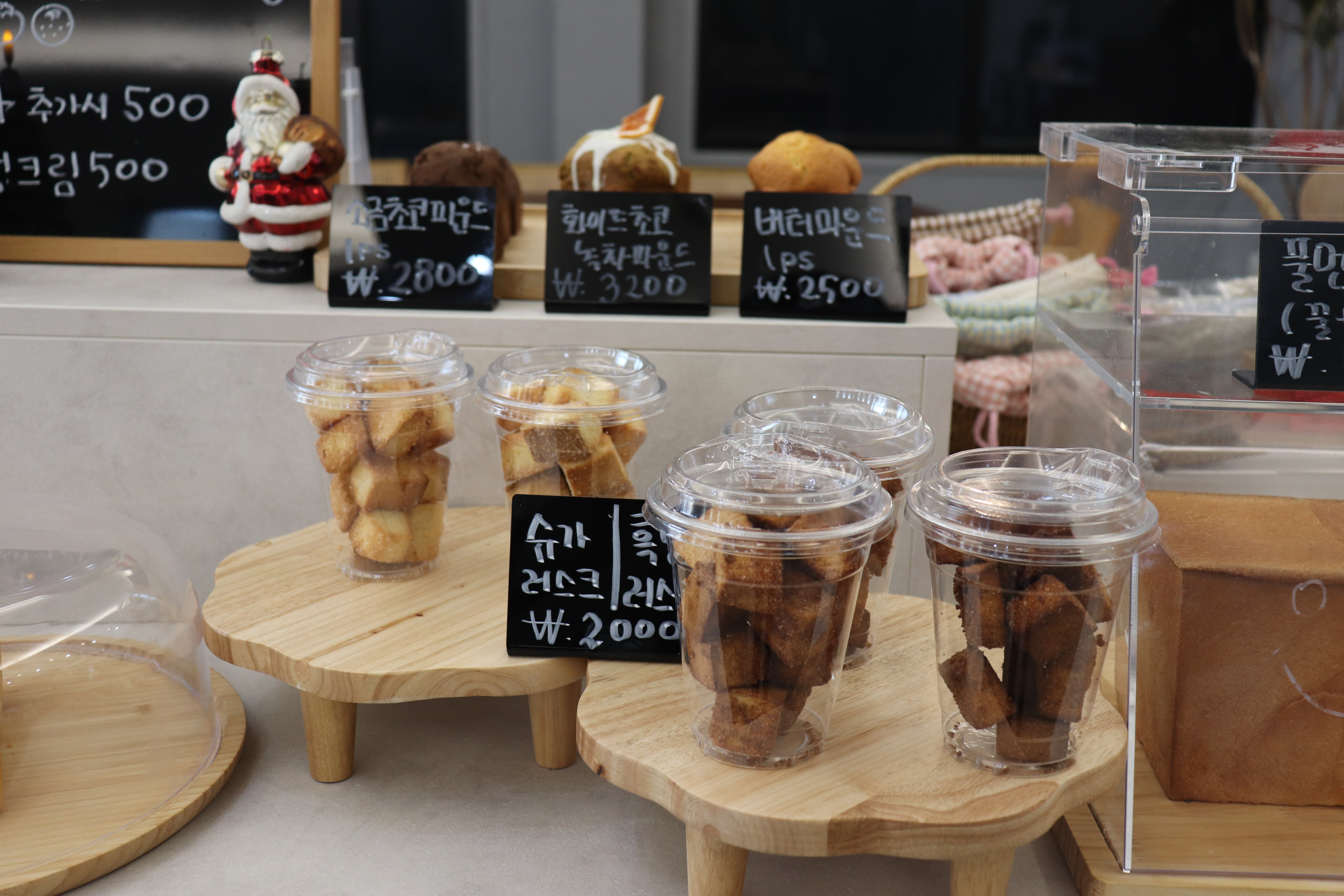 카운터쪽에서는 석송령 카페에서 파는 디저트 종류들도 다양하게 구경할 수 있었습니다.