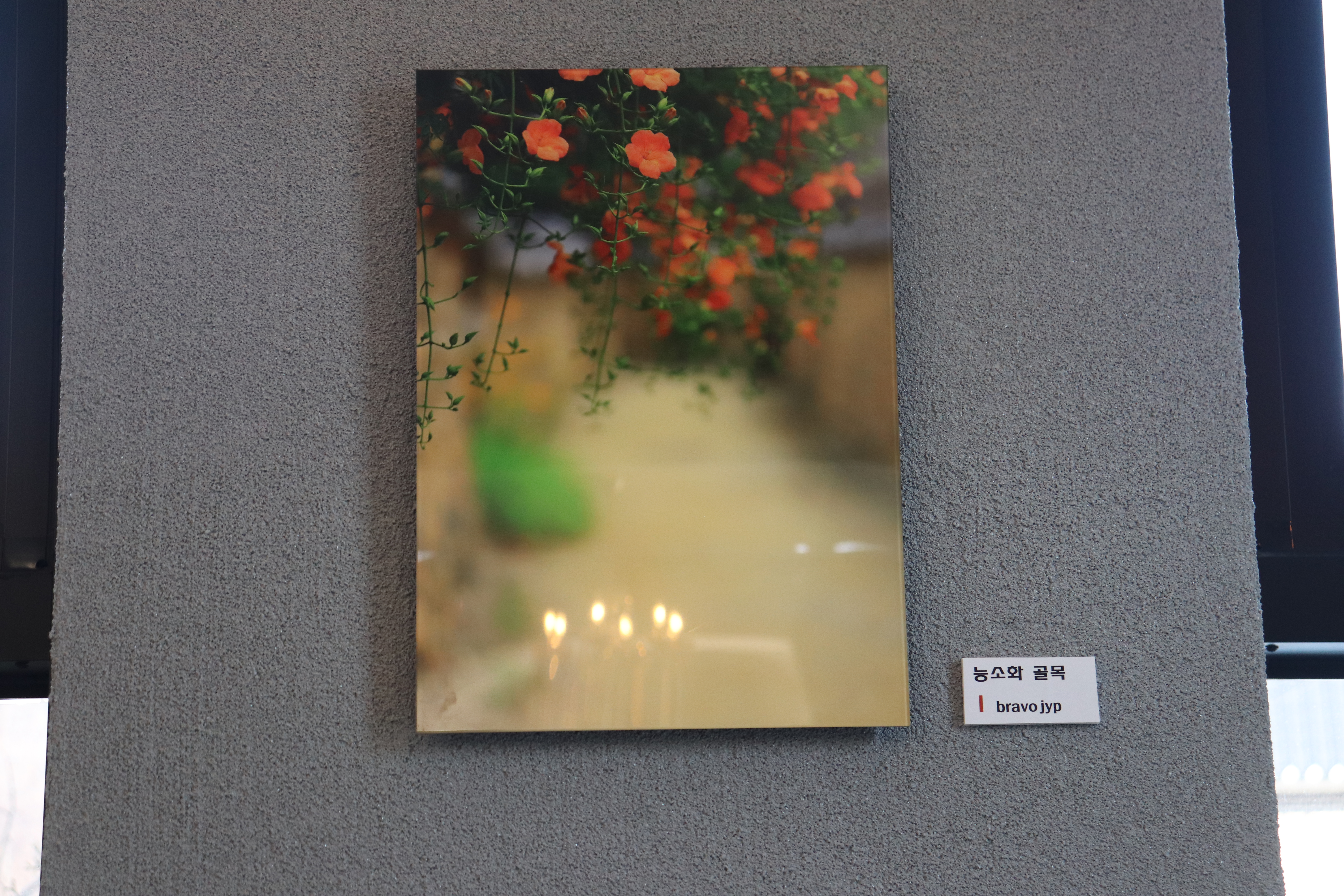 카페 한쪽에는 사진 전시가 된 공간이 있어서 멋진 사진 작품들도 구경해보았어요. 꽃, 나무 등 자연환경을 예쁘게 촬영한 사진들이 있어서 눈까지 즐거운 석송령 카페였습니다.