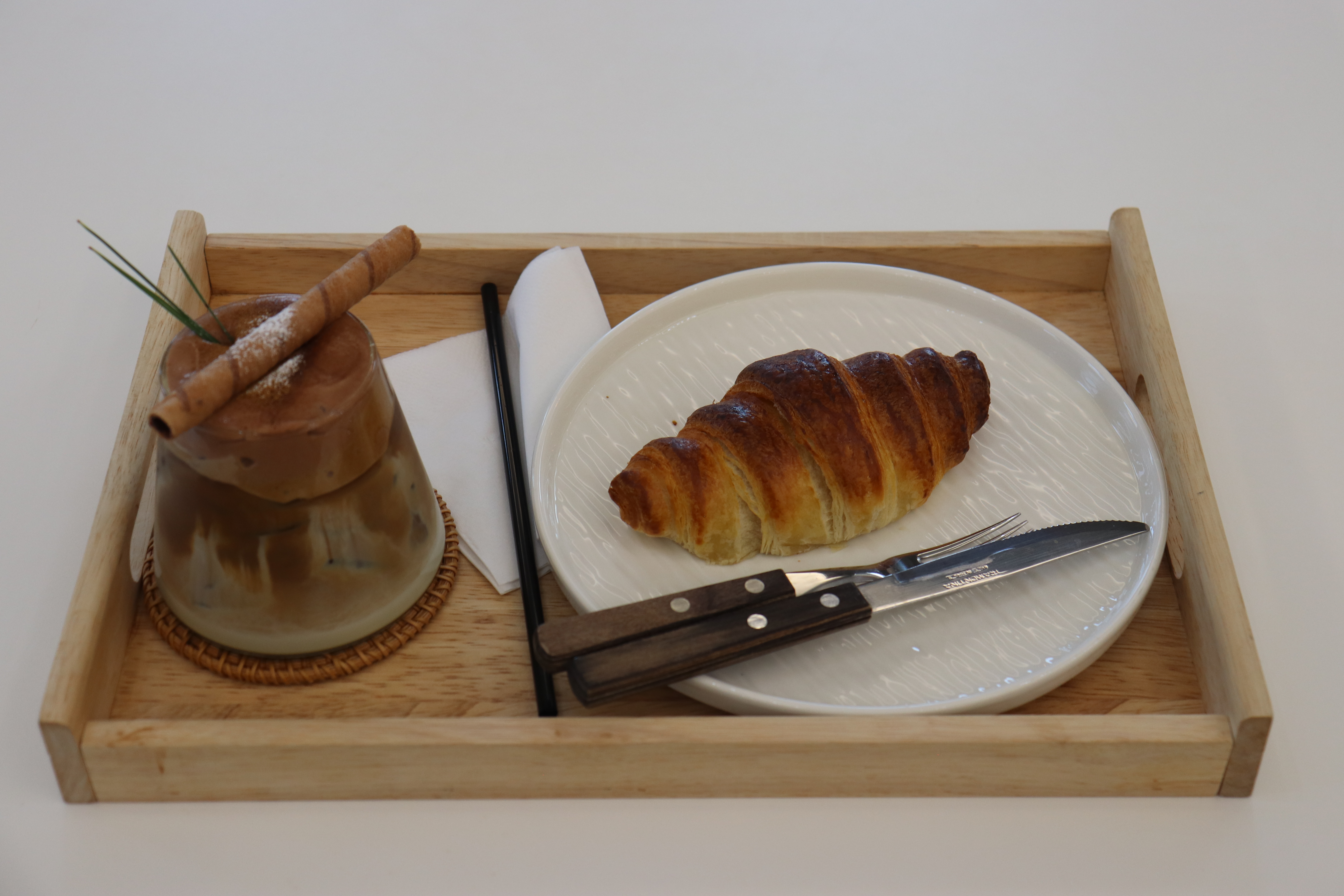 다음은 버터 크루아상인데요. 바삭하고 촉촉하면서 담백한 맛이 일품이었습니다. 겉보기에도 윤기가 흐르는 자태가 식욕을 자극하는데요. 흔히 '겉바속촉'이라고들 하는데 그 정석을 보여주는 맛이었습니다. 전체적으로 깔끔하고 담백한 맛이었어요. 라떼와도 무척 잘 어울리더군요.