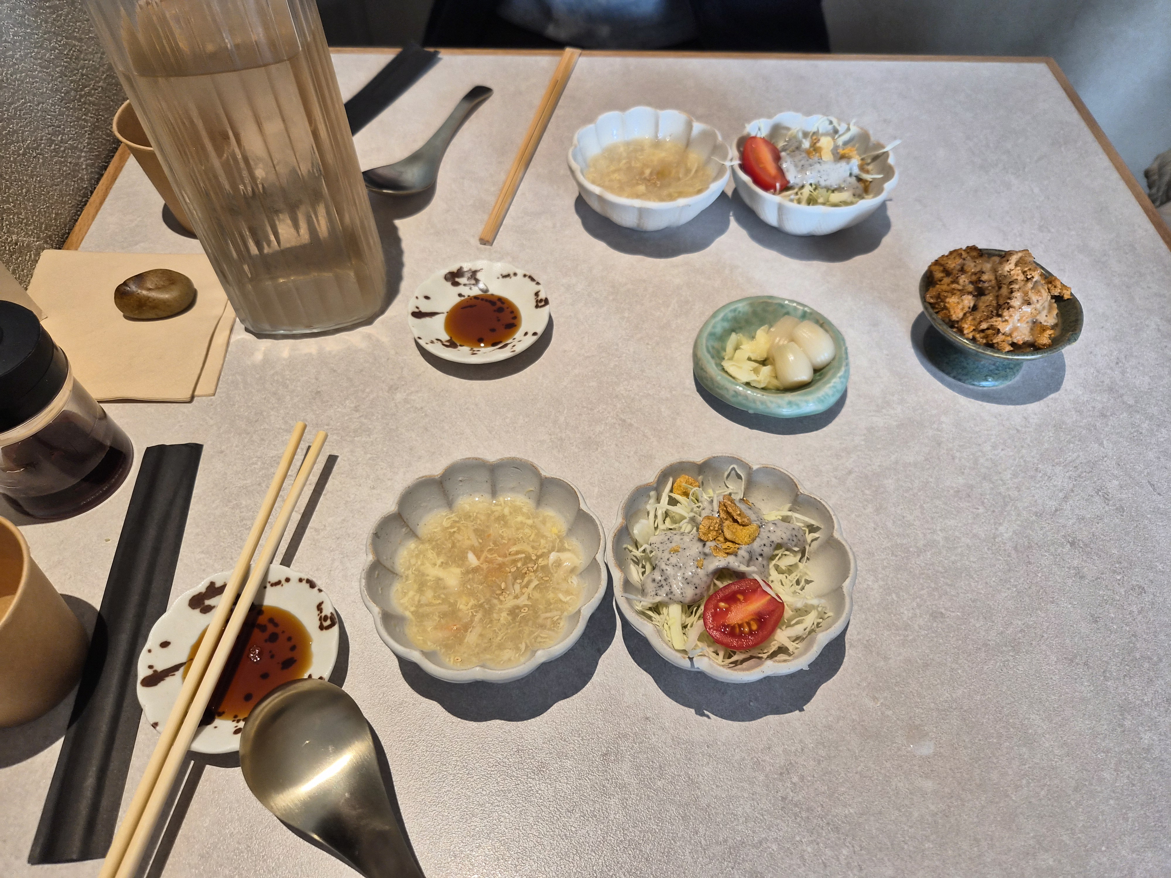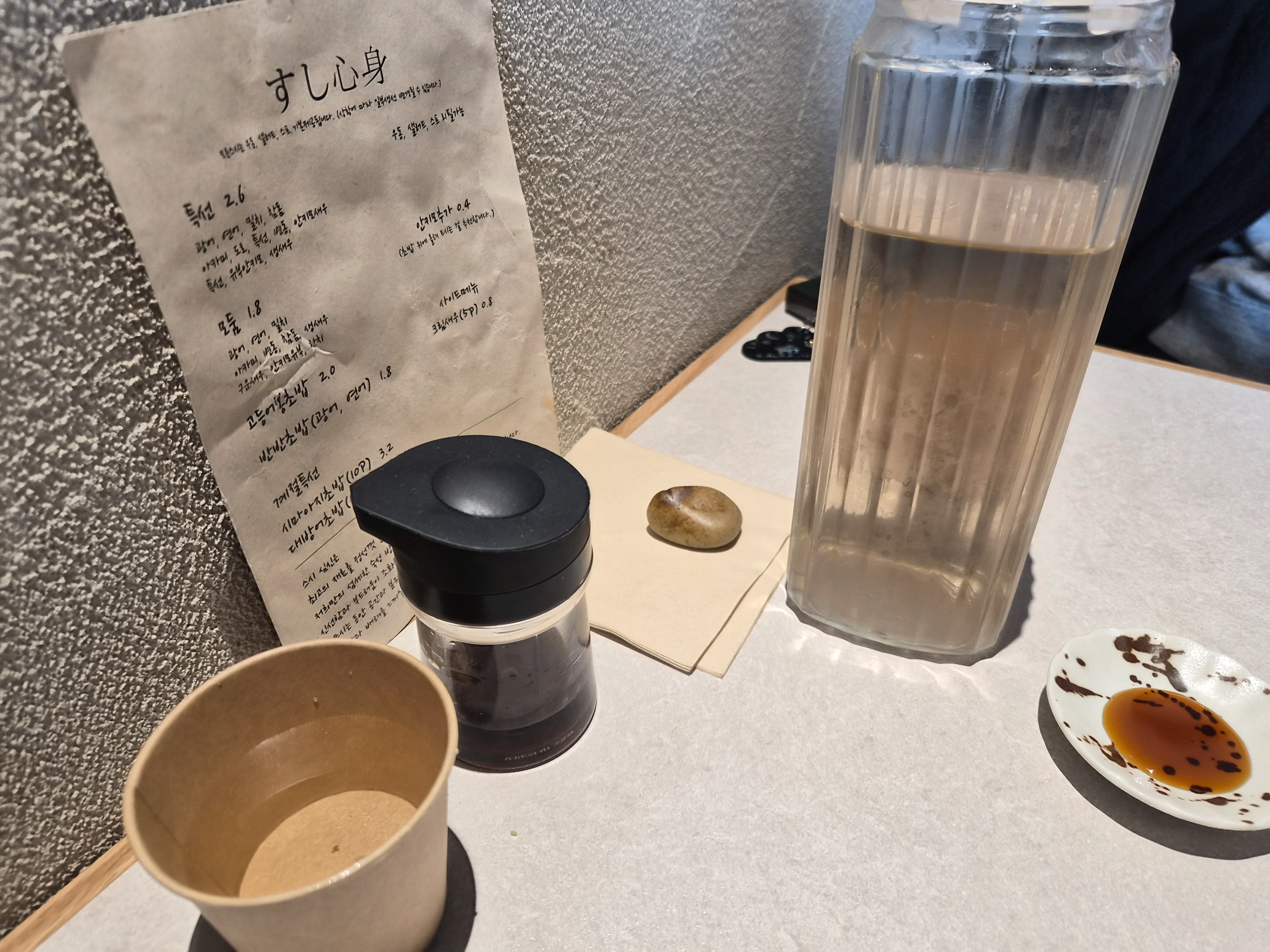 물과 간장 등은 테이블에 미리 준비되어 있다.