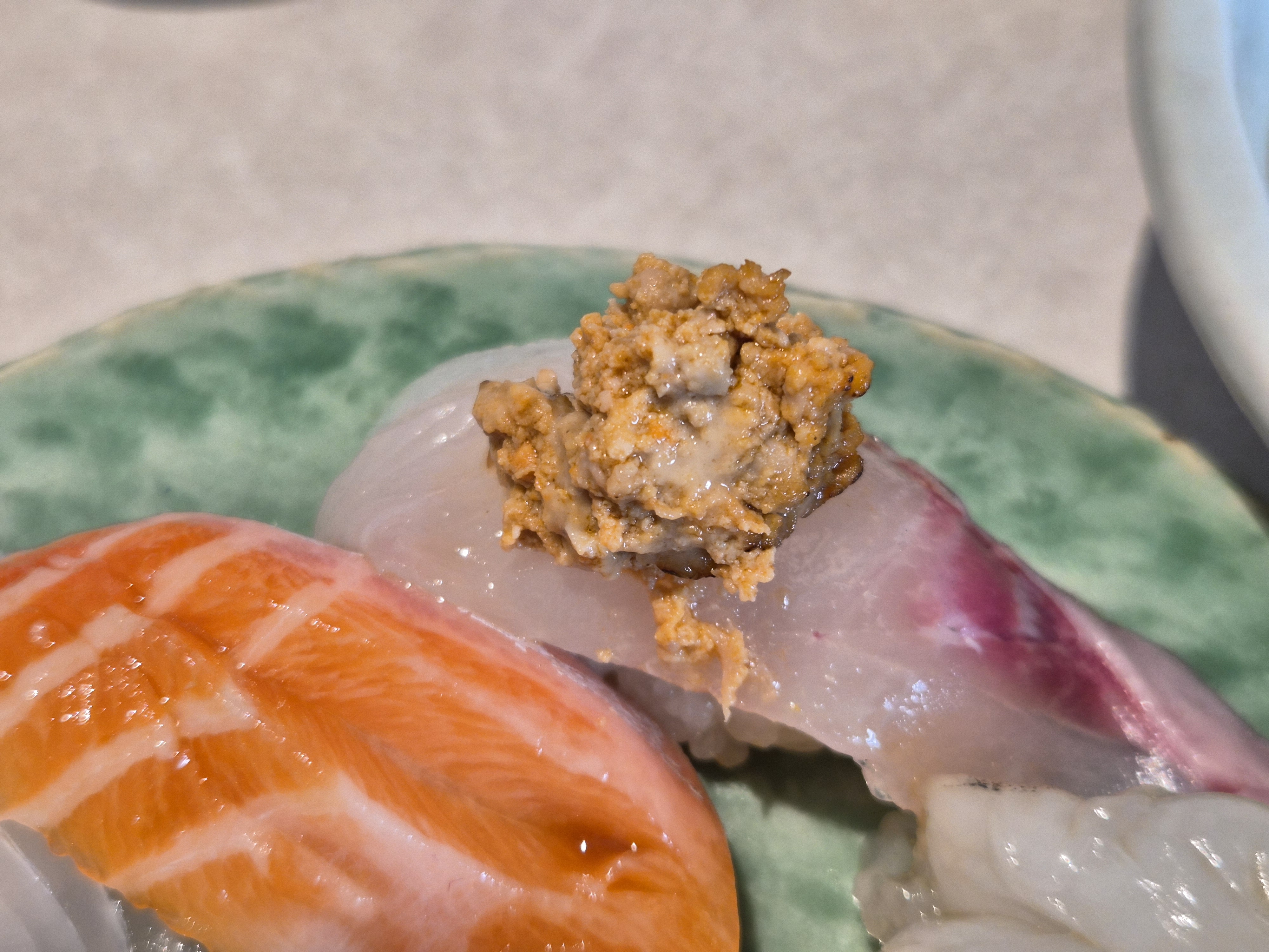 안키모 먼저 나왔는데 엄청 맛있다. ㅋㅋㅋ 초밥 위에 듬뿍 올려서 먹으면 되는 것 같다. 안키모가 뭔지 몰라서 찾아보니까 아귀의 간이라고 한다. 음... 실제로 먹어보면 약간 참치맛 비슷한게 나는데 깊은 맛이 난다. 재료: 아귀 간 (일본어 '아귀(An)' + '간(Ki)' + '모(Mo)') 라고 한다.
