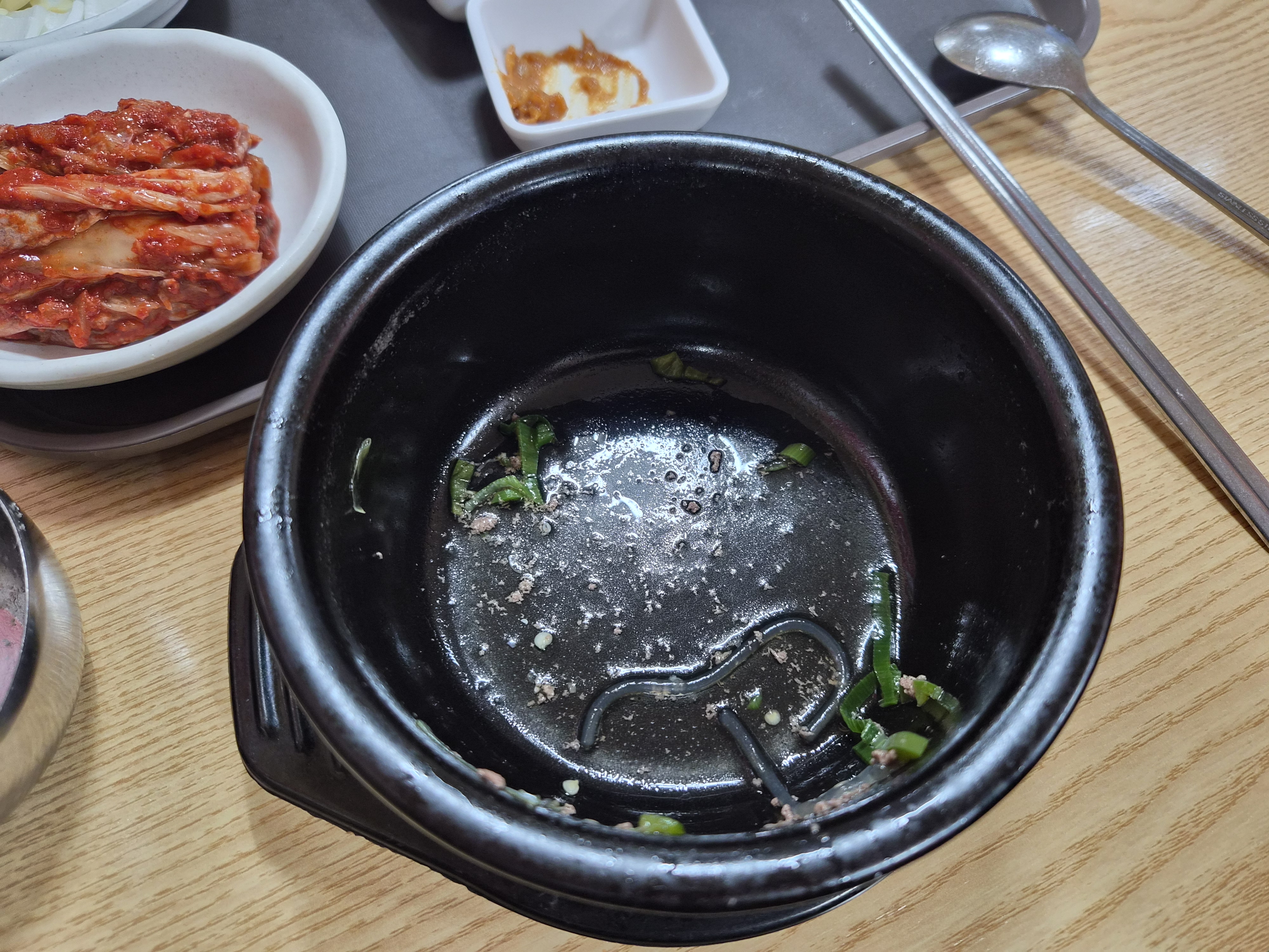 요즘 종종 다니는 곳인데 동구청역 근처에 있는 팔공할매국밥이라는 곳이다. 지난번에 국밥 먹어봤었는데 나름 만족스러워서 이번에는 뚝배기불고기 메뉴 있길래 도전해보았다. 고기 부드럽고 전체적으로 나쁘지 않은 맛이었다. 양도 푸짐하다.