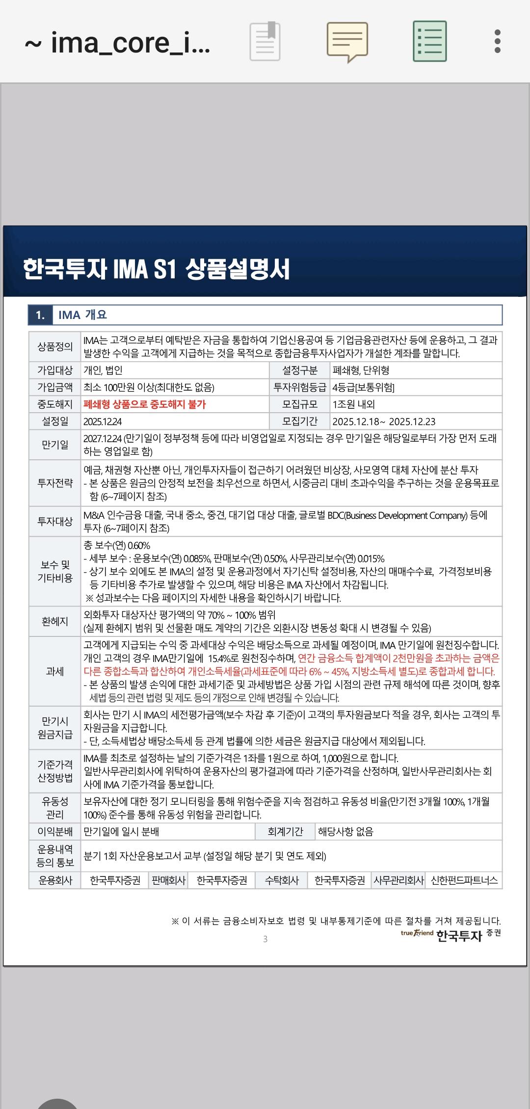 IMA 상품 설명 약관