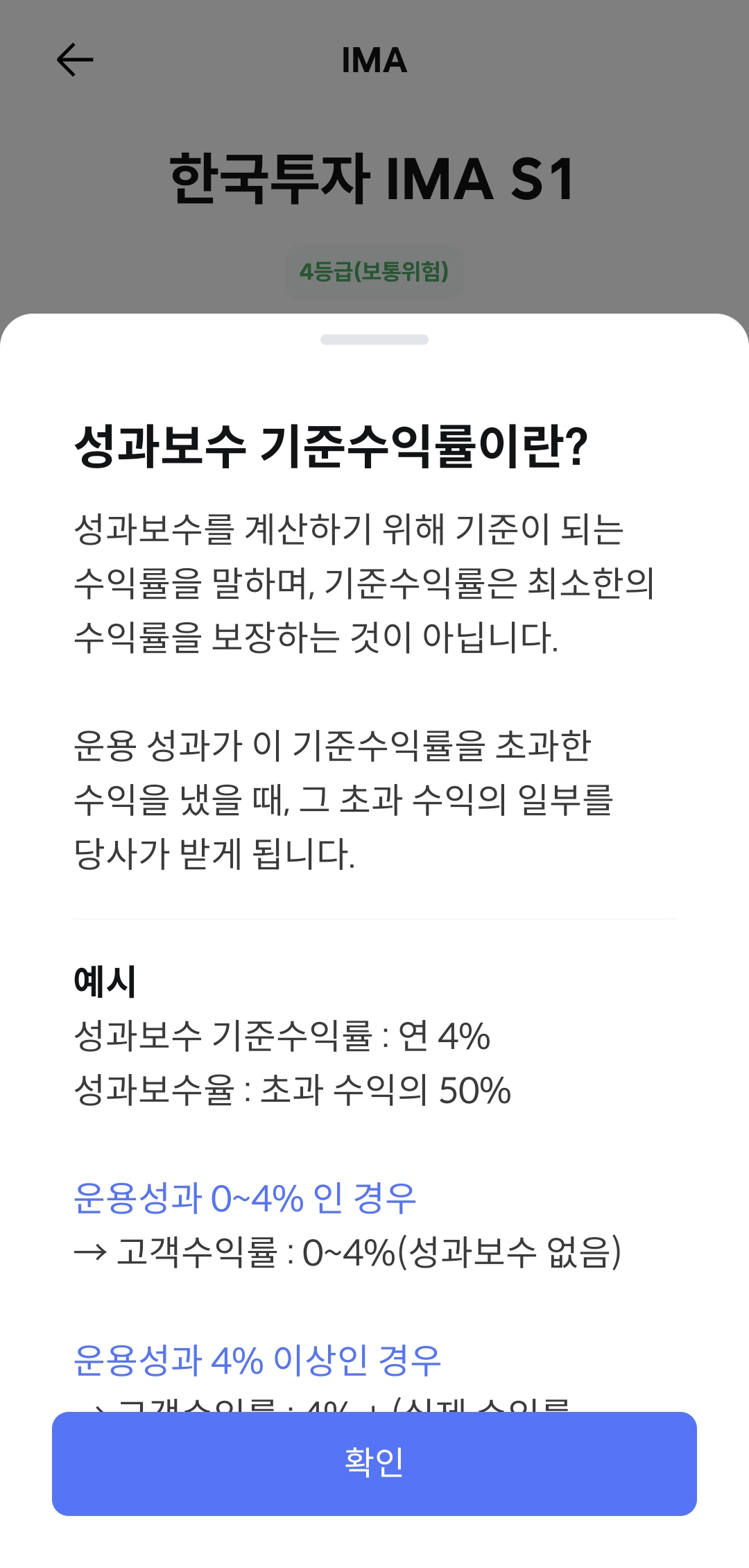총보수가 0.6%로 상당히 높은 편이다. 더불어 목표 수익률인 4%를 초과하는 수익률을 달성할 경우, 성과보수로 다시 40% 보수를 적용한다. 이번에 나온 한국투자 IMA S1 상품은 2년만기 상품이므로 목표수익률 연환산 4%를 적용하면, 2년 뒤 8%의 수익률까지는 총보수 0.6%를 적용, 이후 구간부터는 초과분의 40%의 보수를 줘야한다.